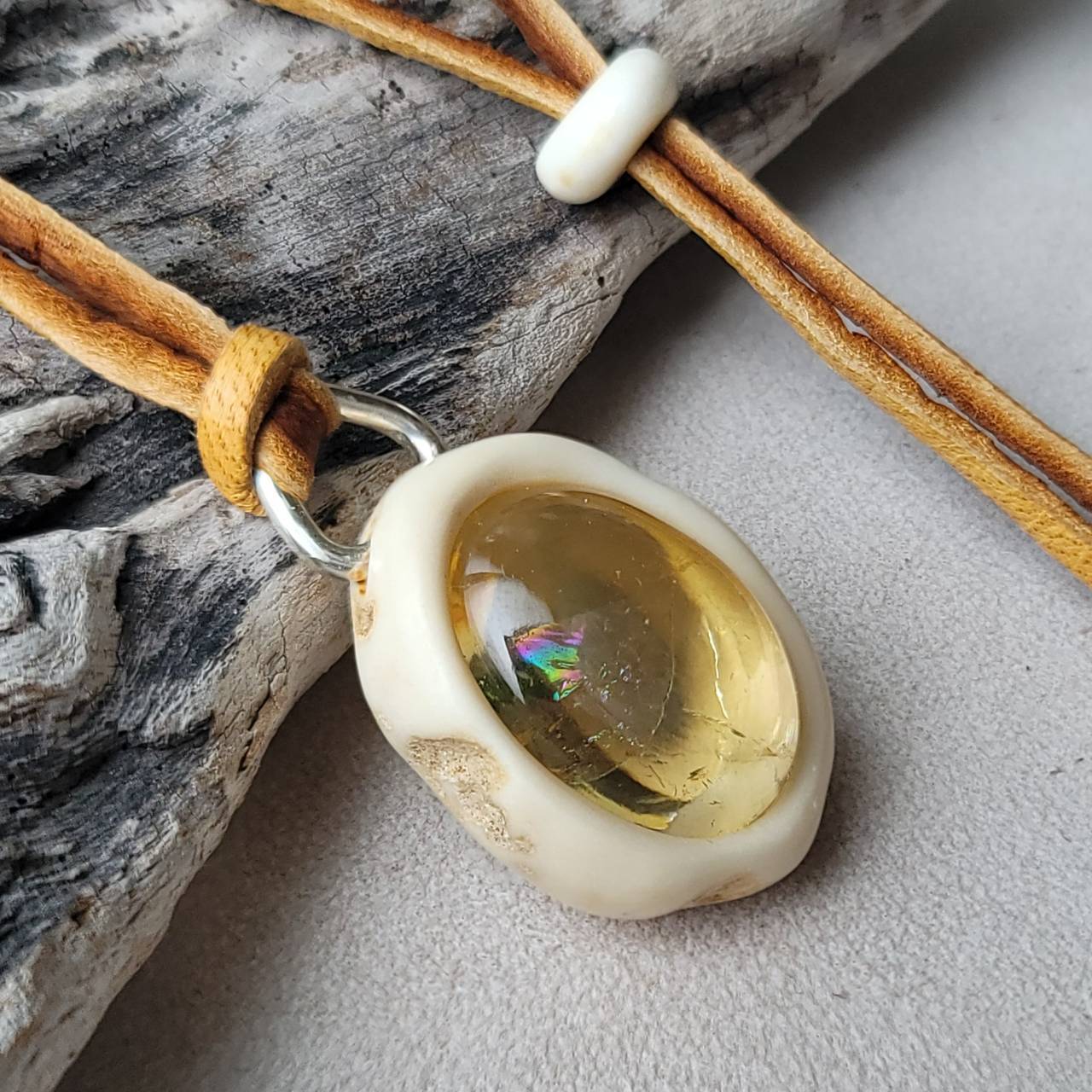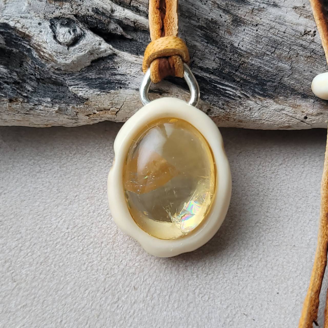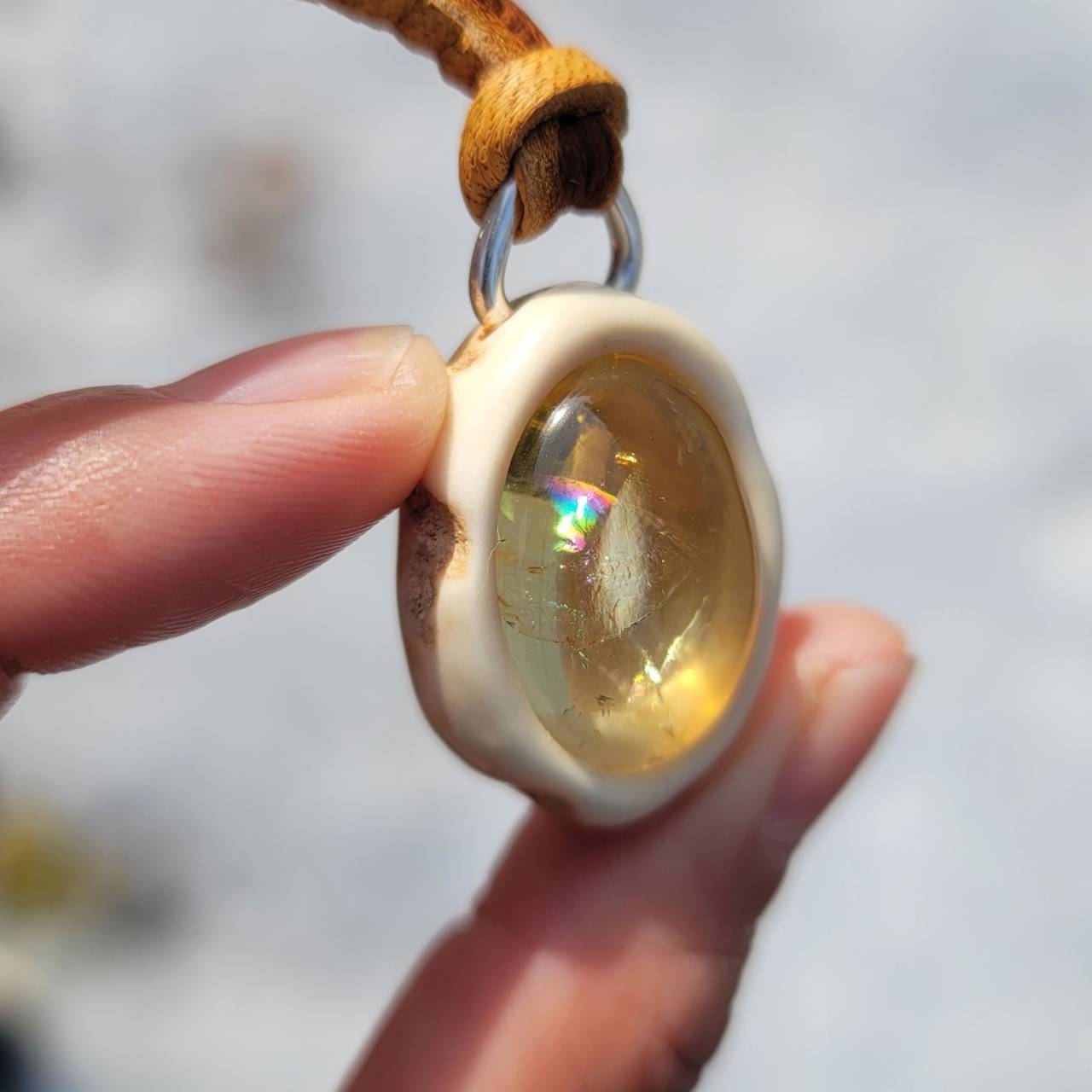 蝦夷鹿の角 虹入りシトリンのペンダント