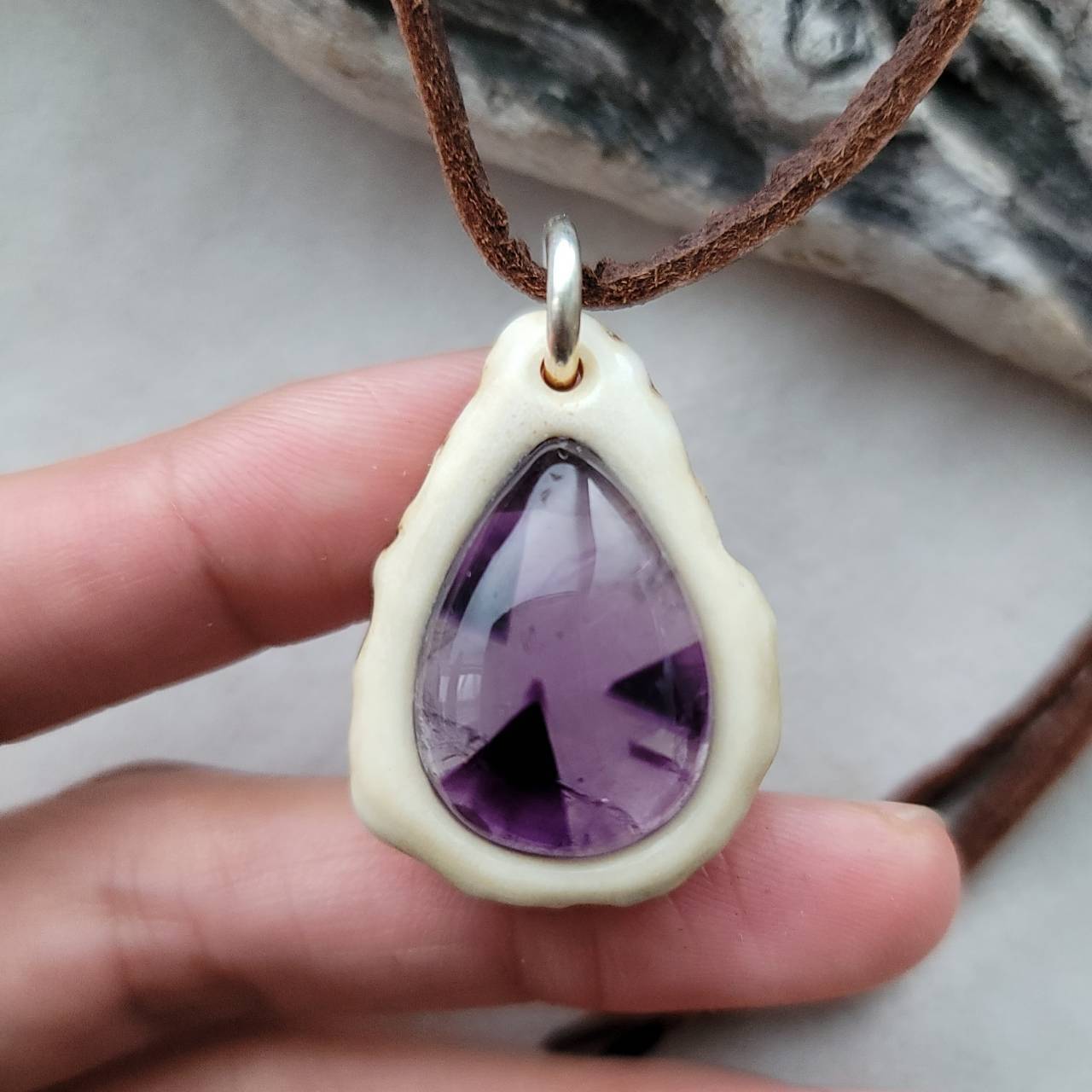 【蝦夷鹿の角 トラピッチェアメジストのペンダント】