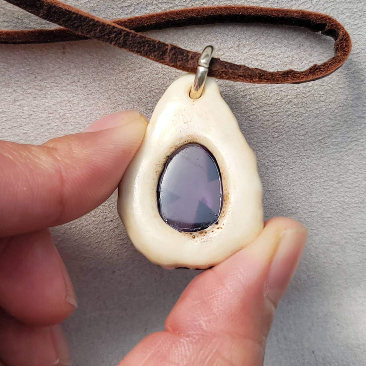 蝦夷鹿の角 トラピッチェアメジストのペンダント