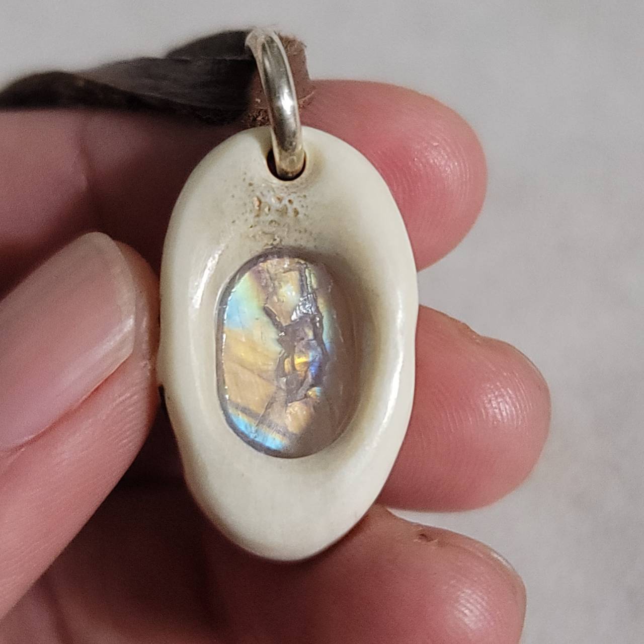 鹿の角 レインボームーンストーン ペンダント アウトレット