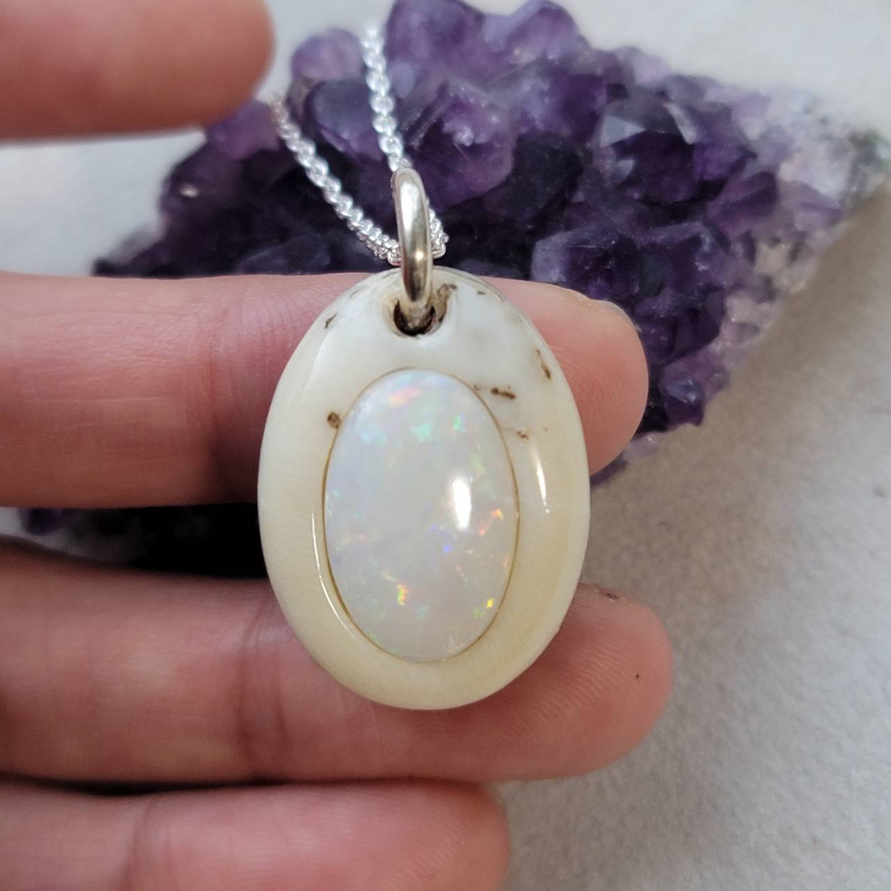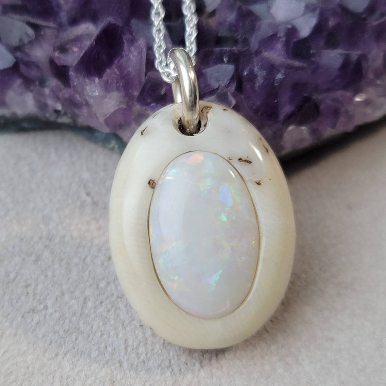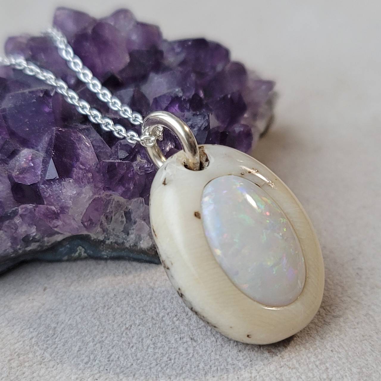 【虹彩珊瑚 ホワイトオパールのネックレス】