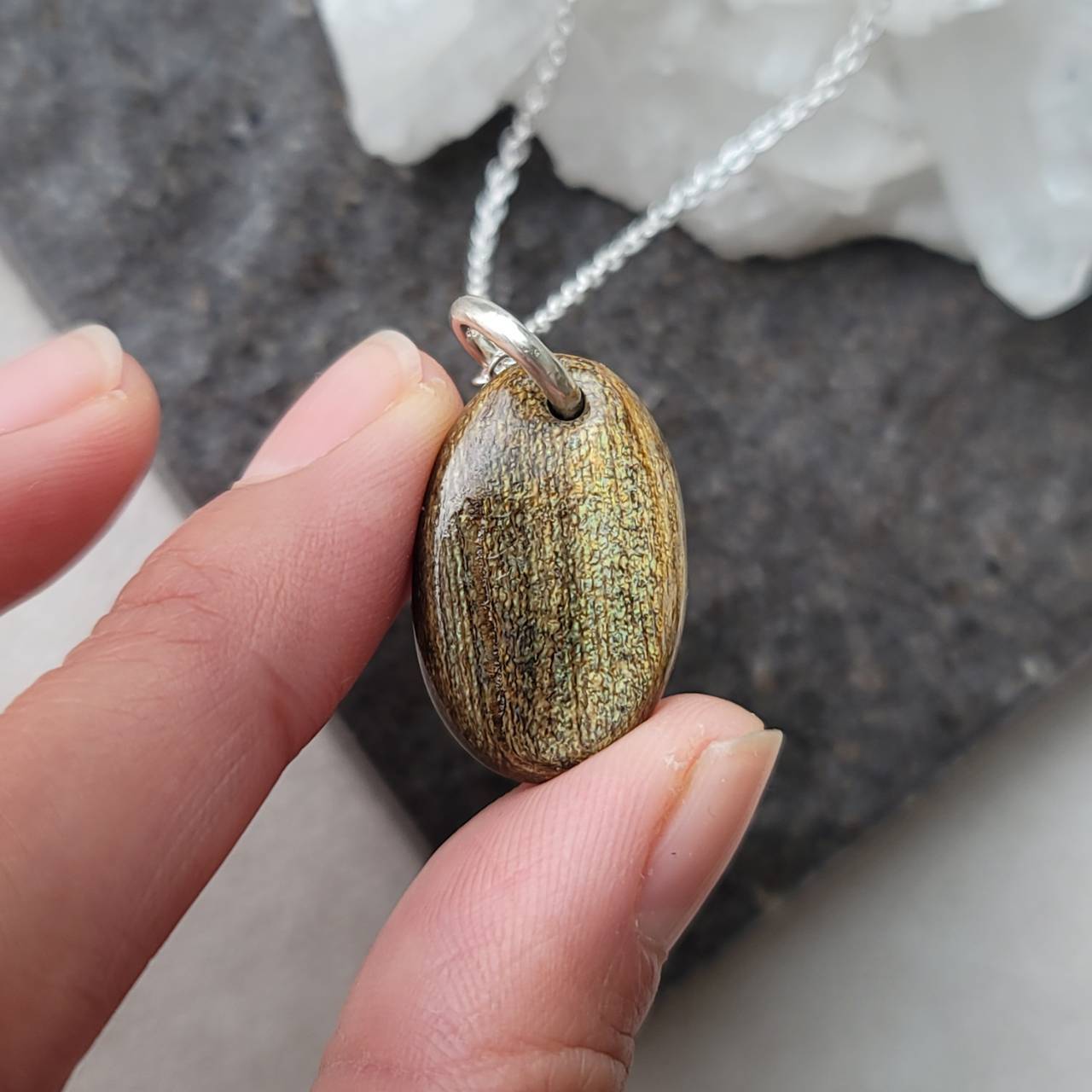 この珊瑚を研磨すると、不思議な虹色が現れ、木目のような美しさと重なりウッディでナチュラル、神秘的な玉虫色に輝きます。