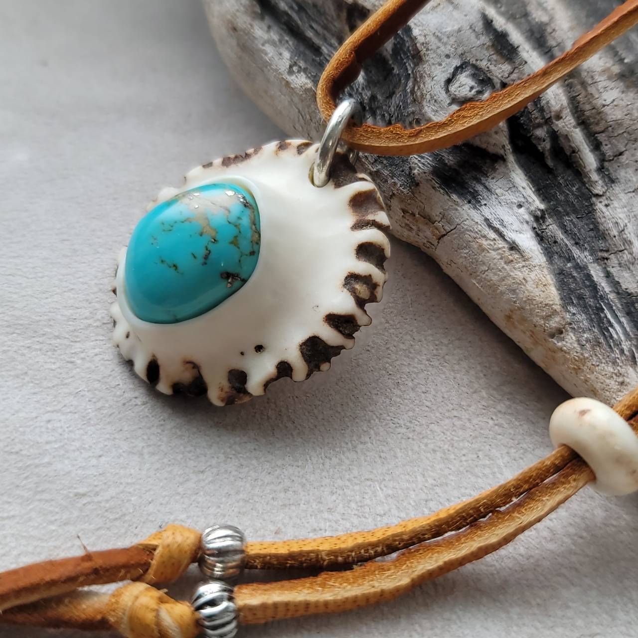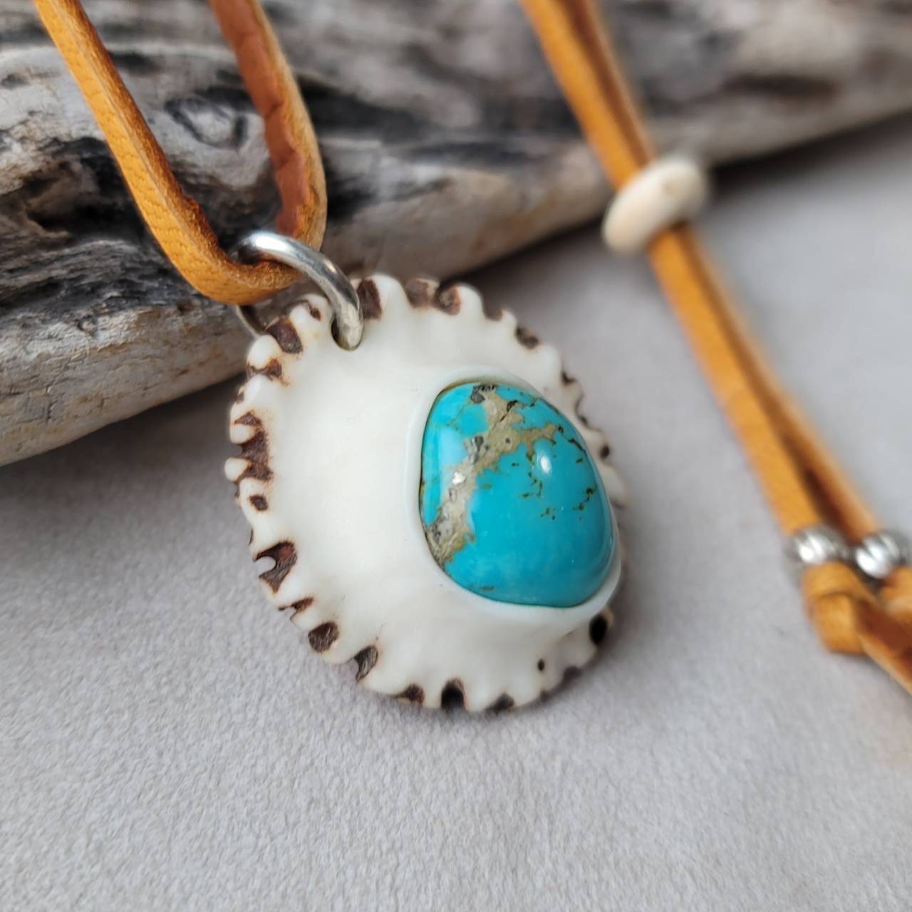 【鹿の角 オールドキングマンターコイズのペンダント】