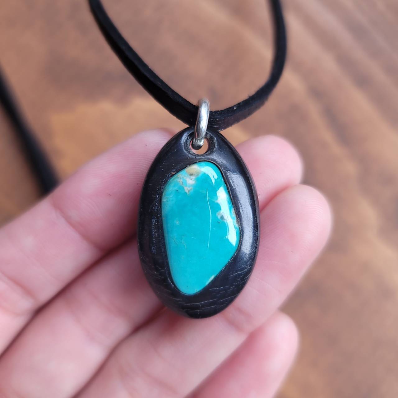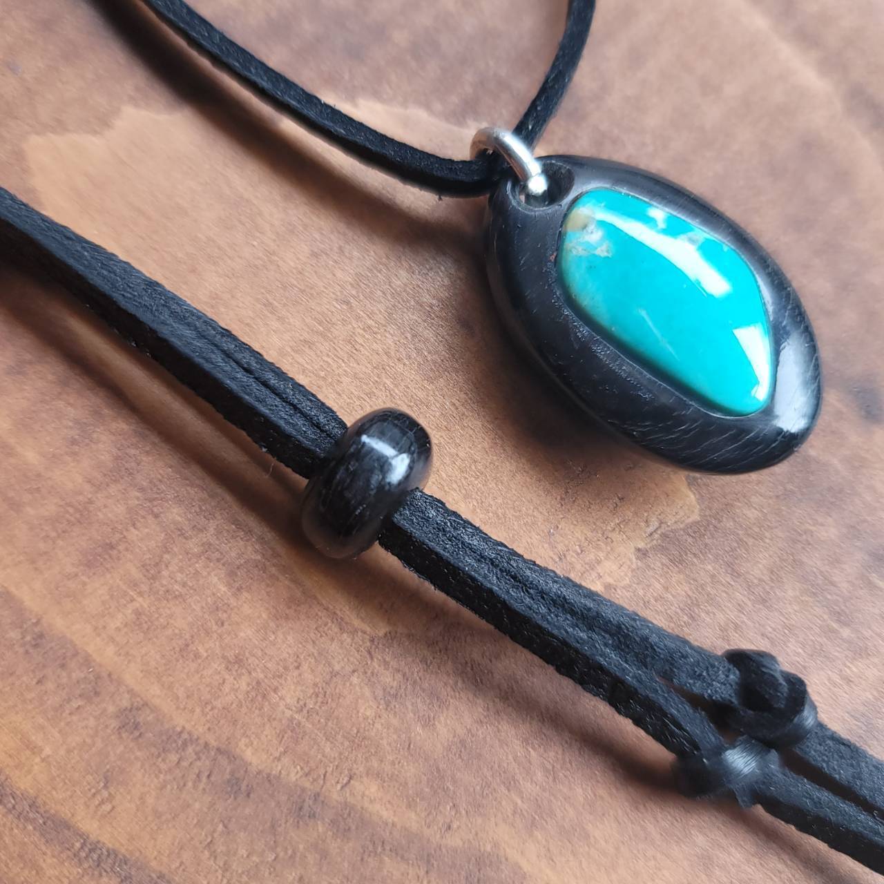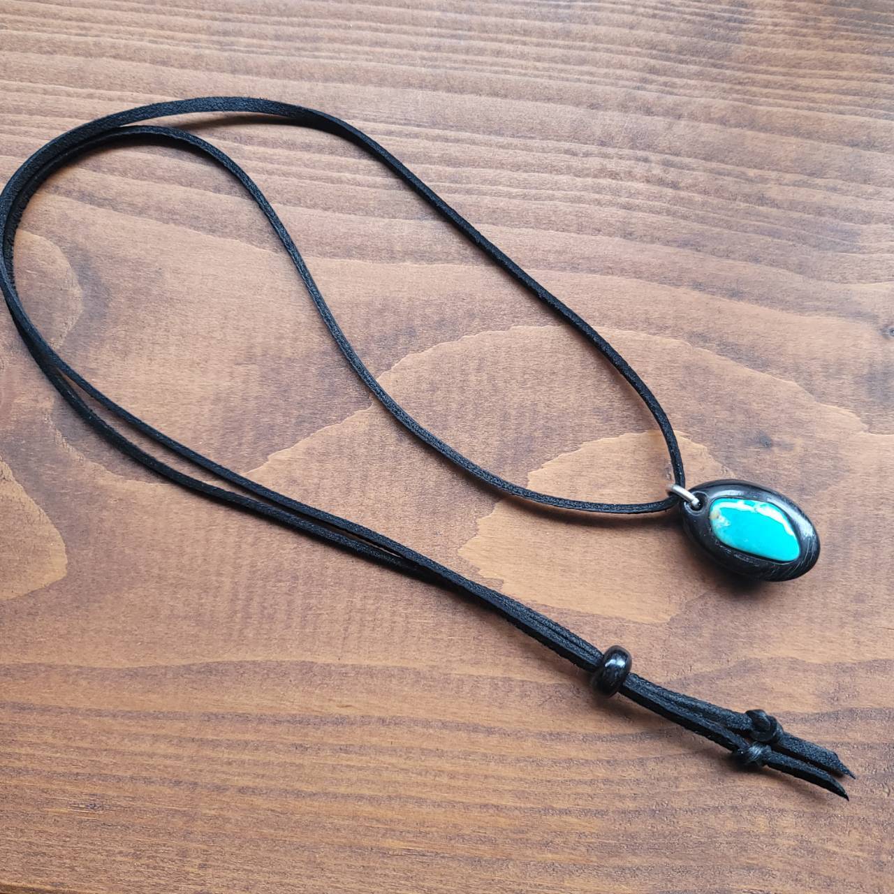 【水牛の角 キャリコレイクターコイズのペンダント】