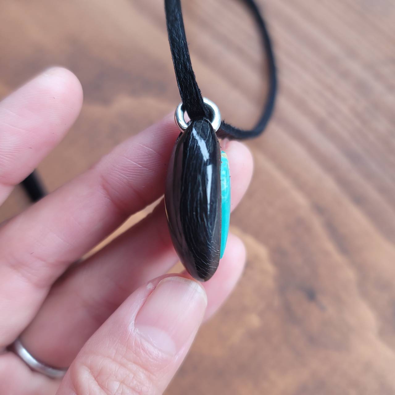 黒い土台に鮮やかなブルーのターコイズがとても映えます。