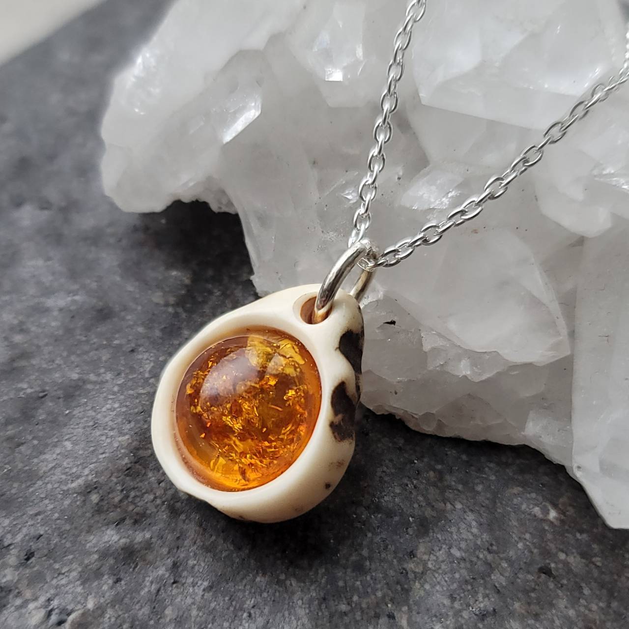 琥珀(アンバー)は、太古の時代に樹木から分泌した樹液が固まり樹脂となって地層に埋もれ、その後化石化したものです。