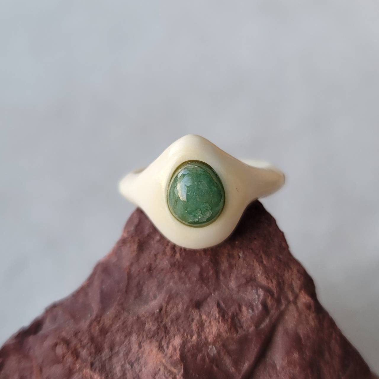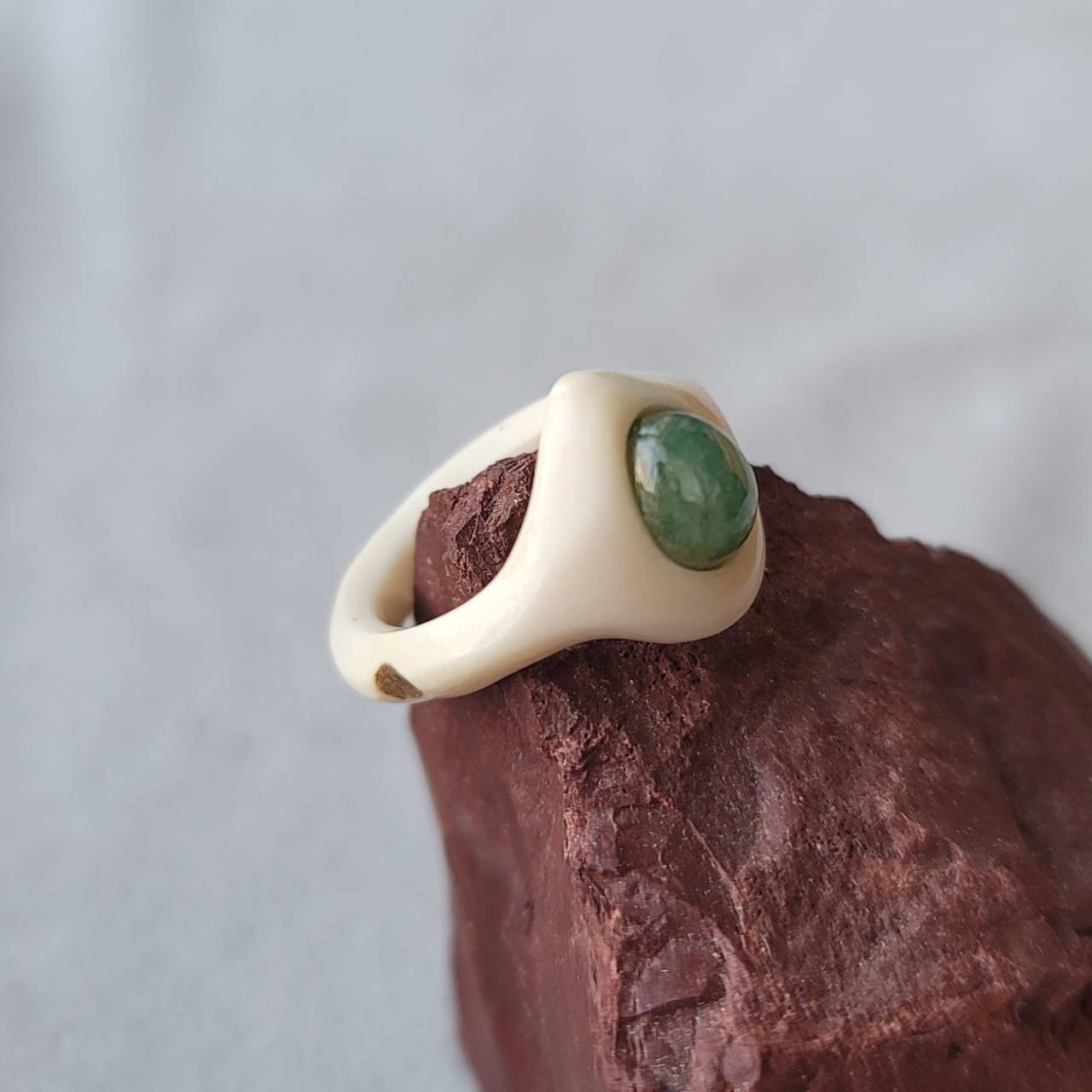 大自然の素材である鹿の角に深い緑色のエメラルドが輝きを加え、存在感と上品さを兼ね備えたシンプルなデザインに仕上がっています。
