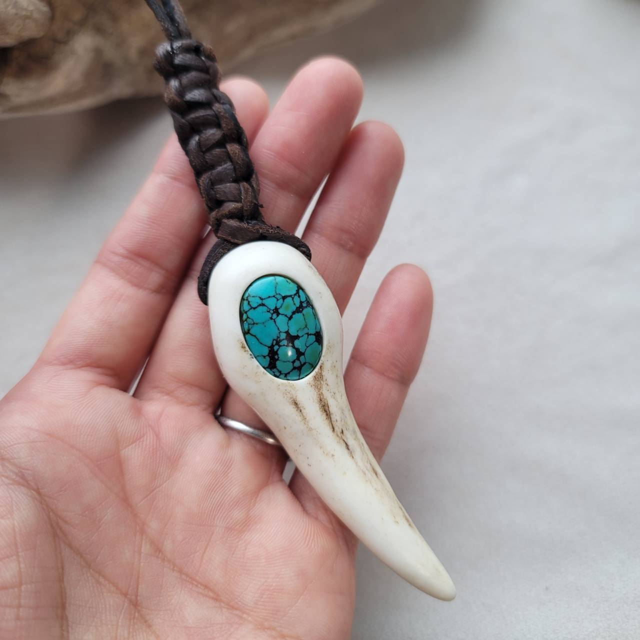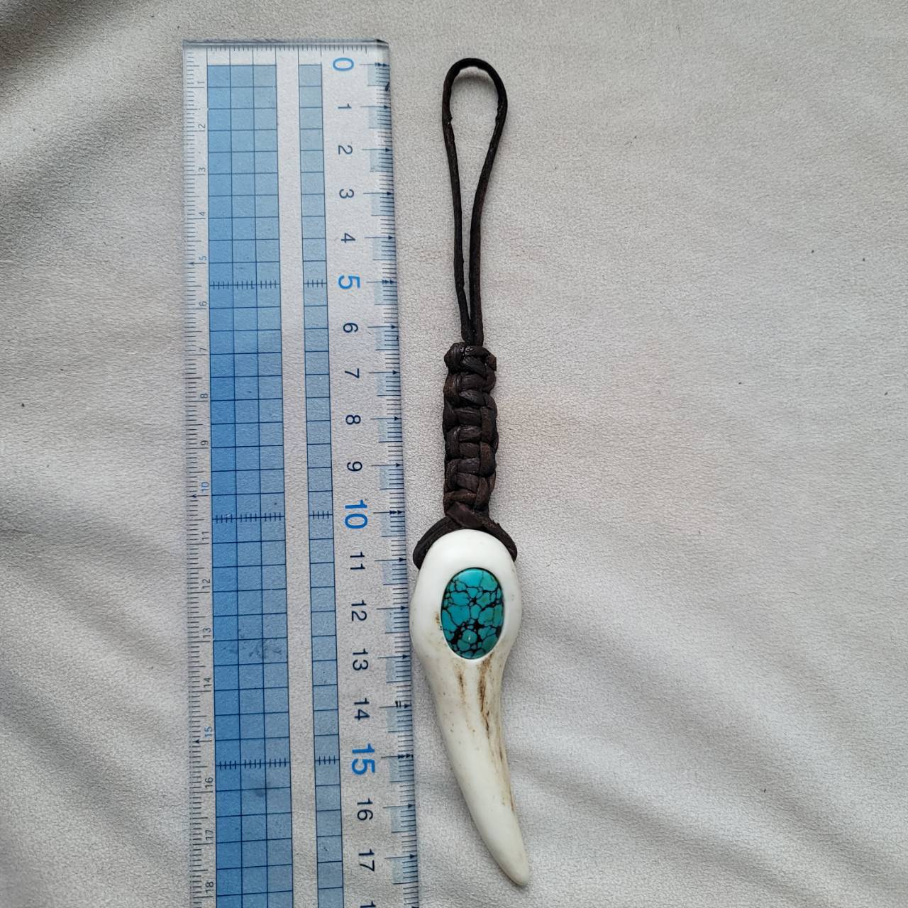 鹿の角とターコイズの組み合わせが美しく自然の力を感じさせるストラップです。
