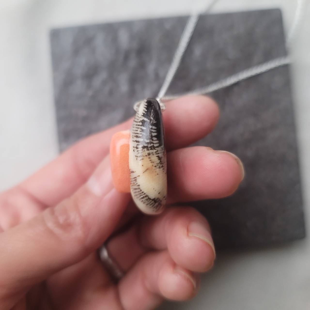 オーダー専用 虹彩珊瑚と深海赤珊瑚のネックレス