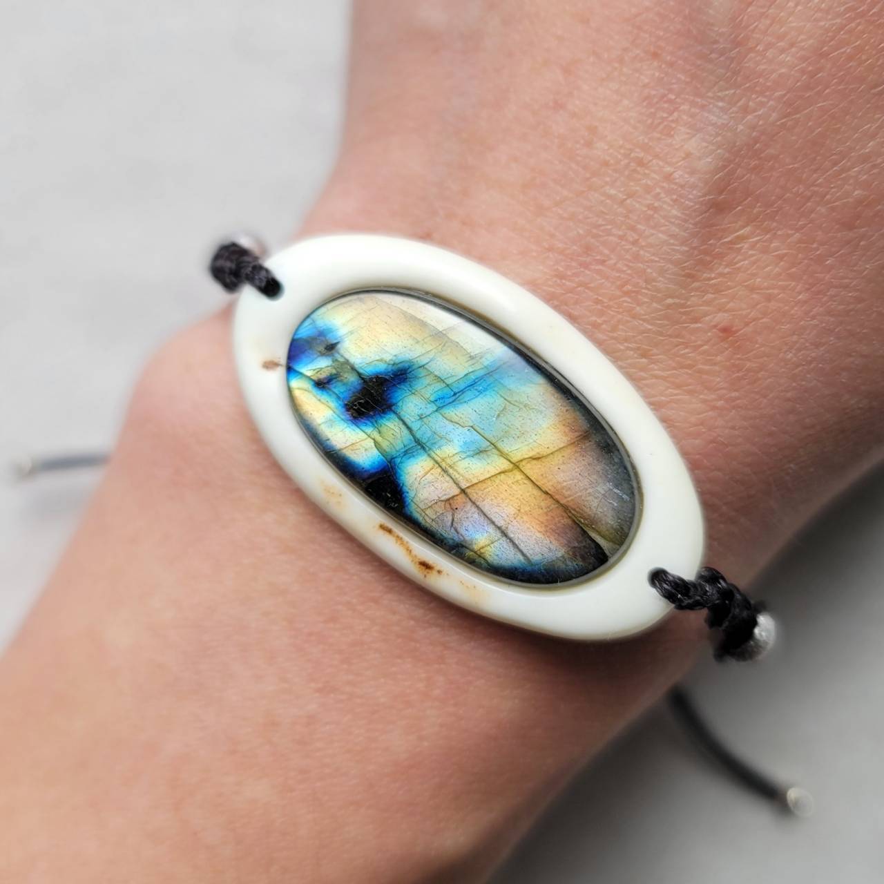 こちらは【鹿の角 ラブラドライトのブレスレット】になります。
