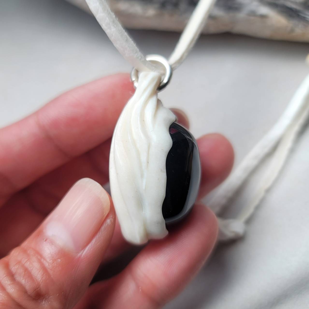 オーダー専用 鹿の角モリオンペンダント、水牛の角ヒマラヤ水晶ペンダント