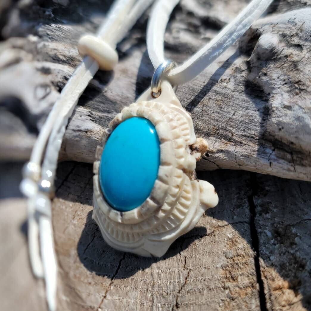 こちらは【鹿の角 スリーピングビューティターコイズのペンダント】になります。