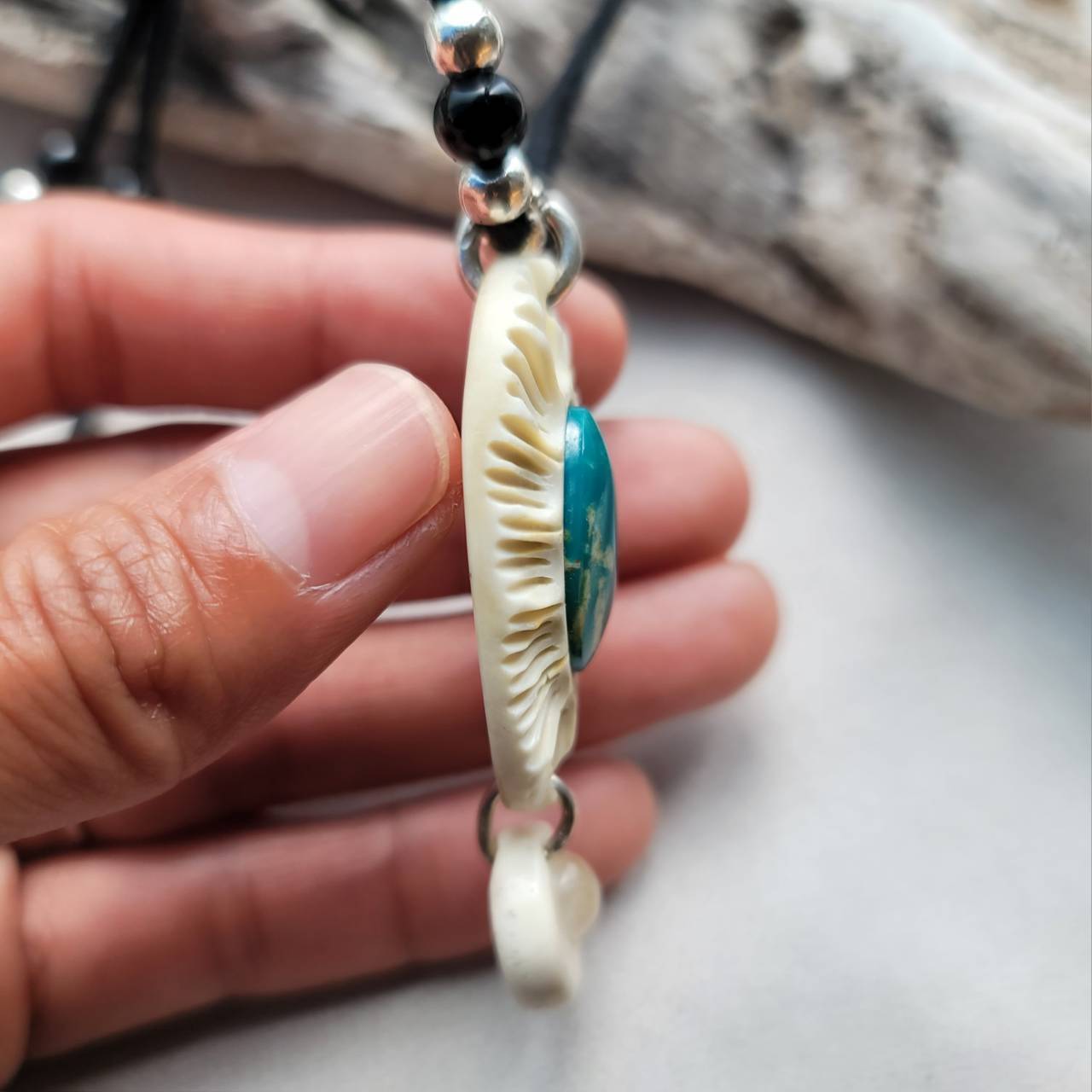 鹿の角 ロイストンターコイズとムーンストーンのペンダント