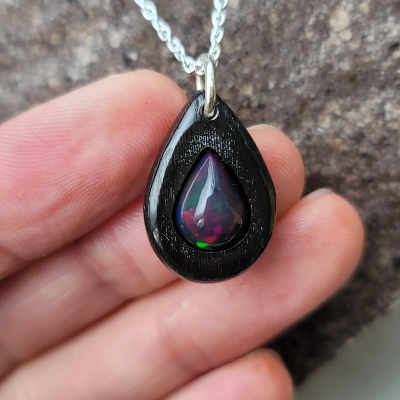 こちらは【水牛の角 ブラックオパールのネックレス】になります。