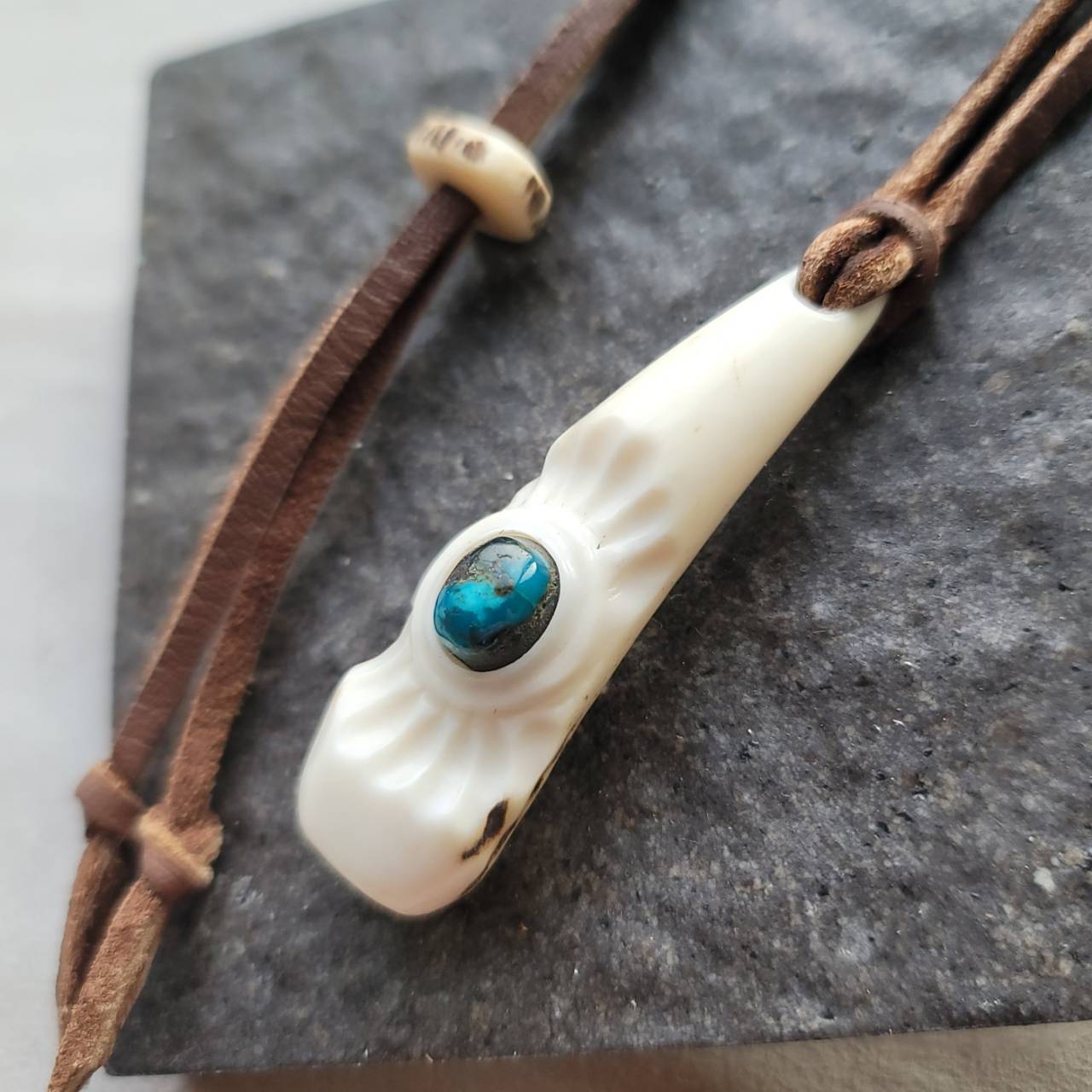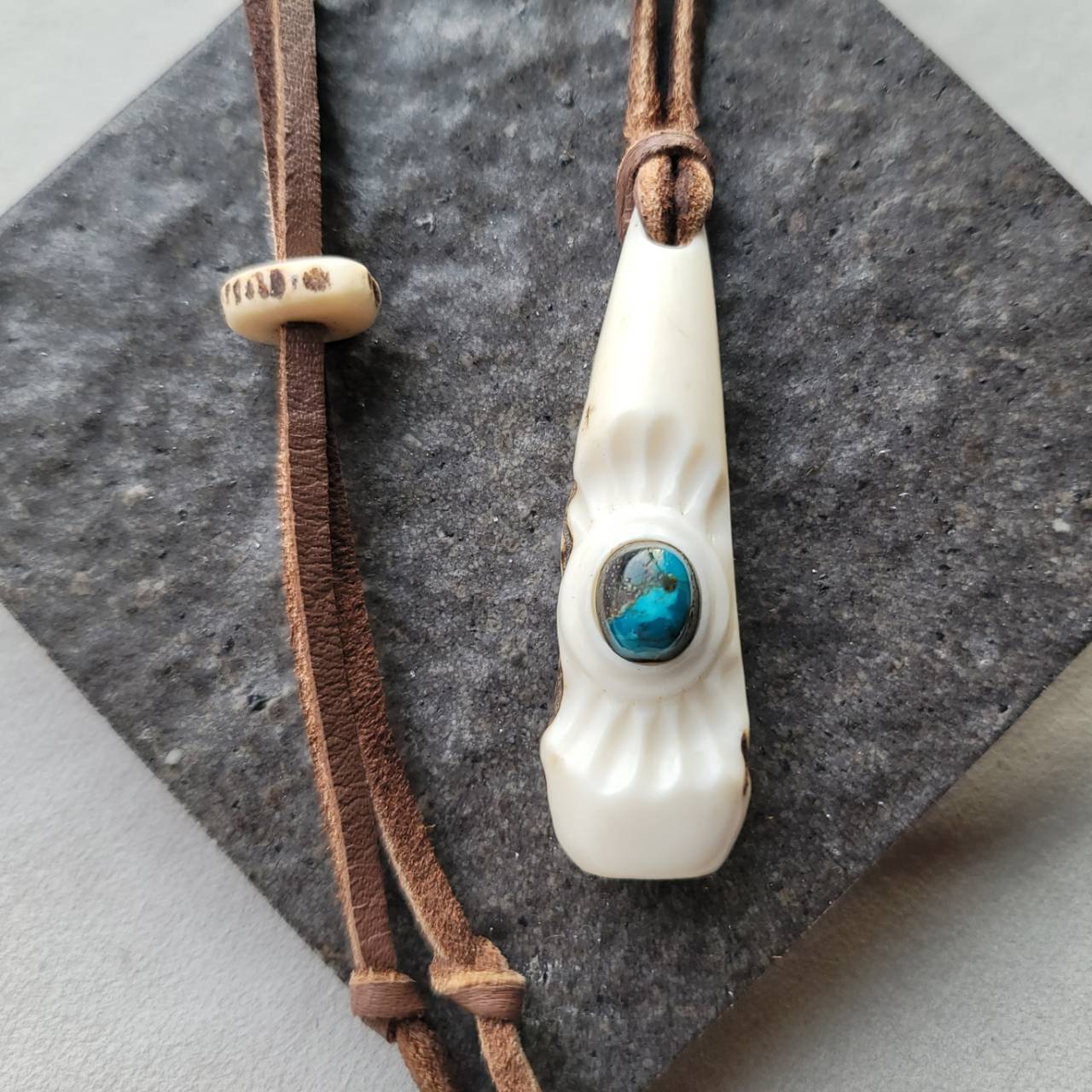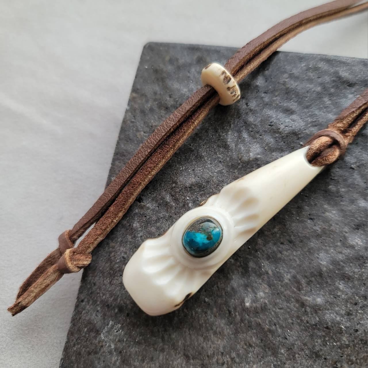 こちらは【鹿の角 キングマンターコイズの角笛ペンダント】になります。