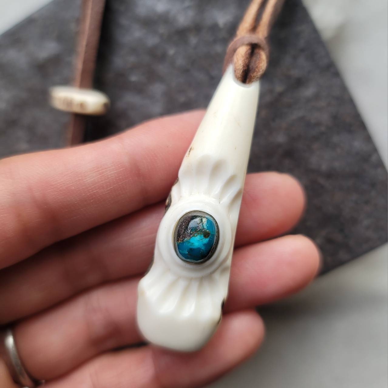 鹿の角笛にターコイズを埋め込んだ贅沢な一品