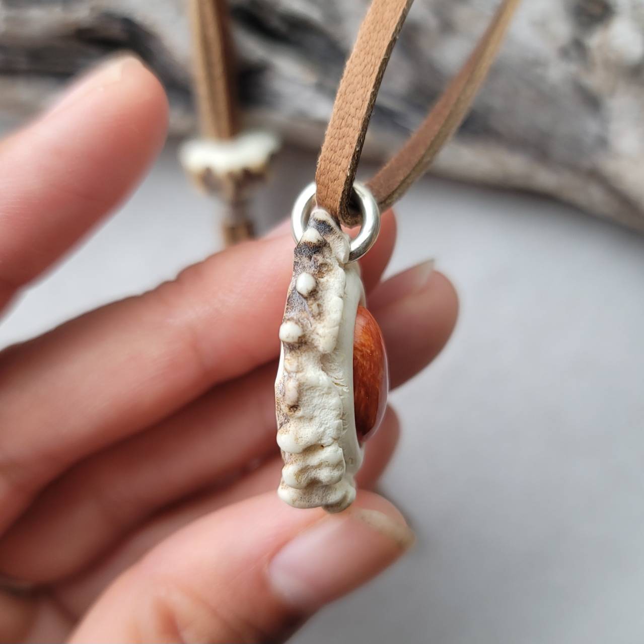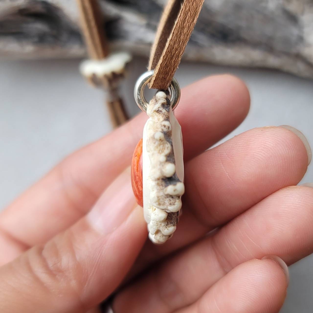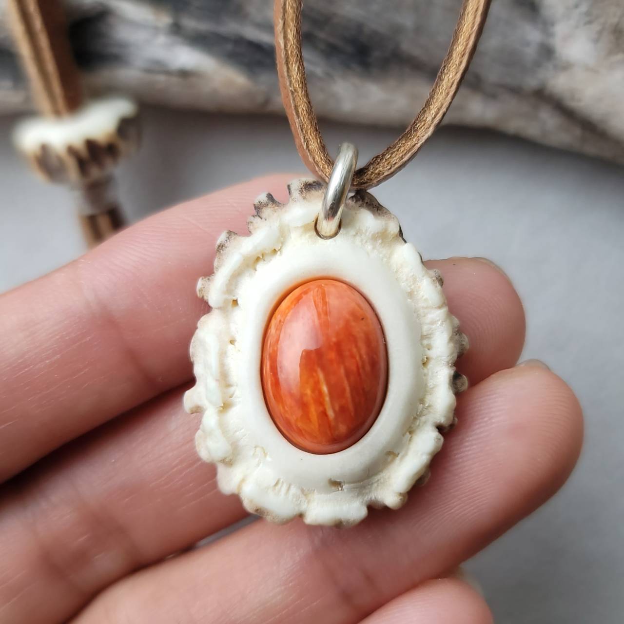 こちらは【鹿の角 スパイニーオイスターシェルのペンダント】になります。