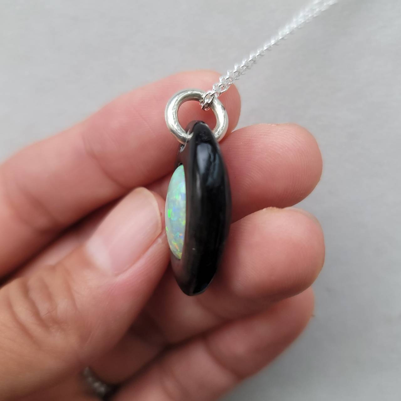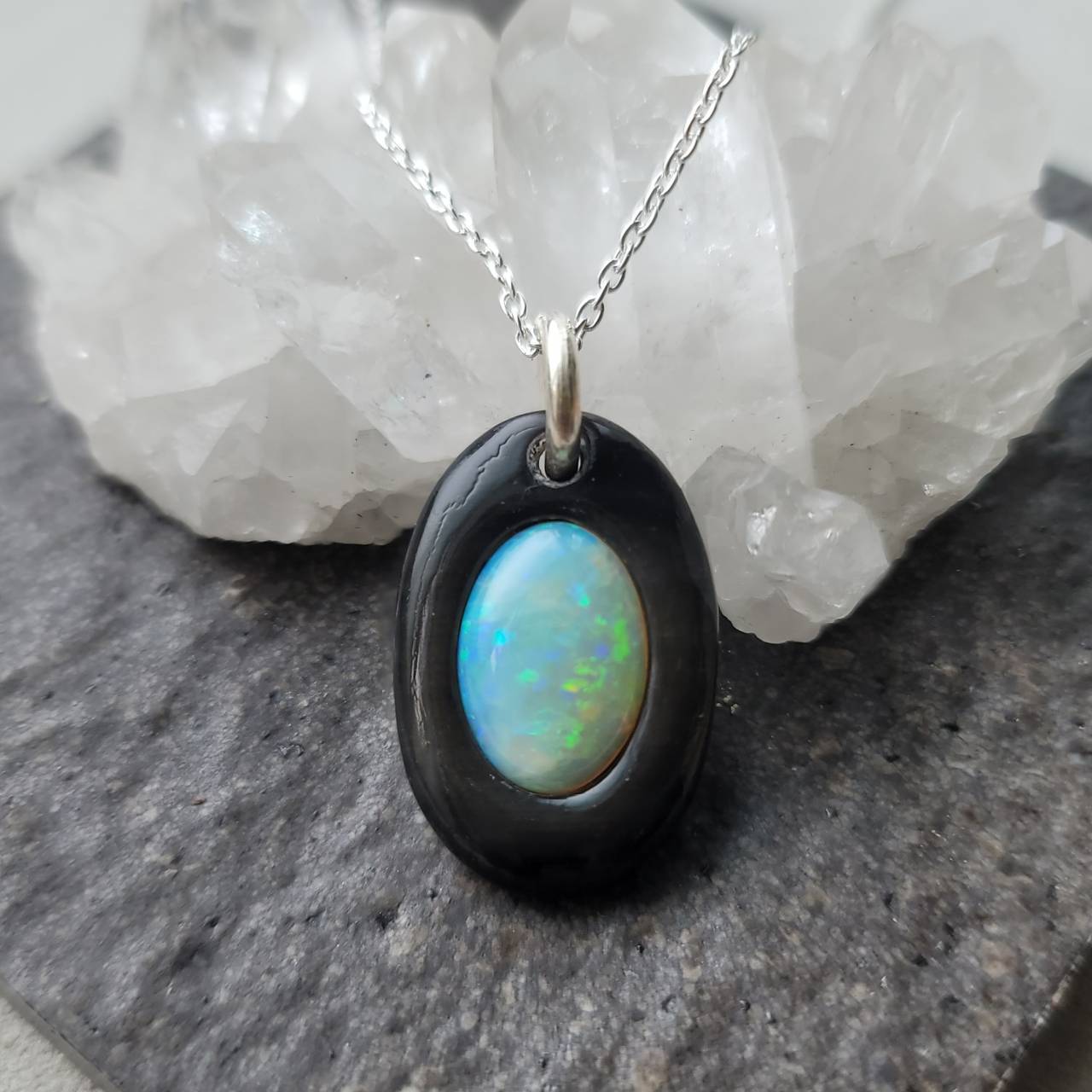 こちらは【水牛の角 ホワイトオパールのネックレス#3】になります。