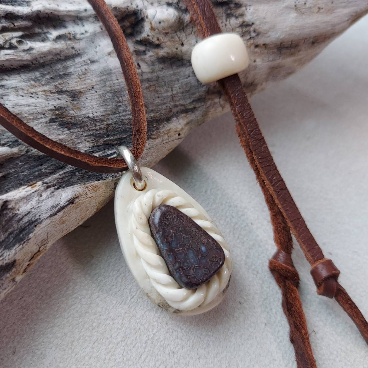 北海道奥尻島で「身に着ける自然」というコンセプトを掲げ、鹿の角や水牛の角、虹彩珊瑚、天然石などを使用してアクセサリーや小物を制作しています。