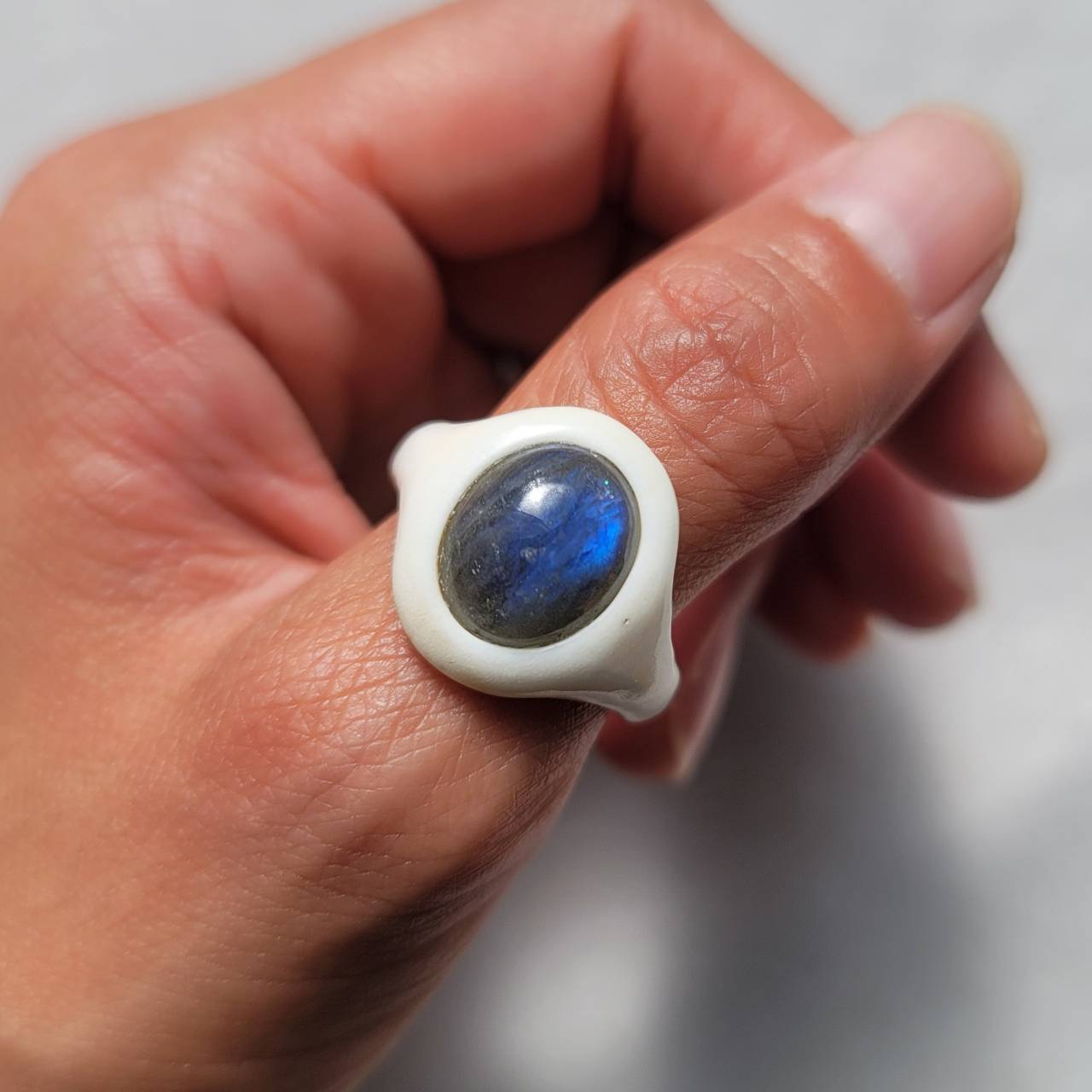 鹿の角 ブルーラブラドライトのリング 約13.5号