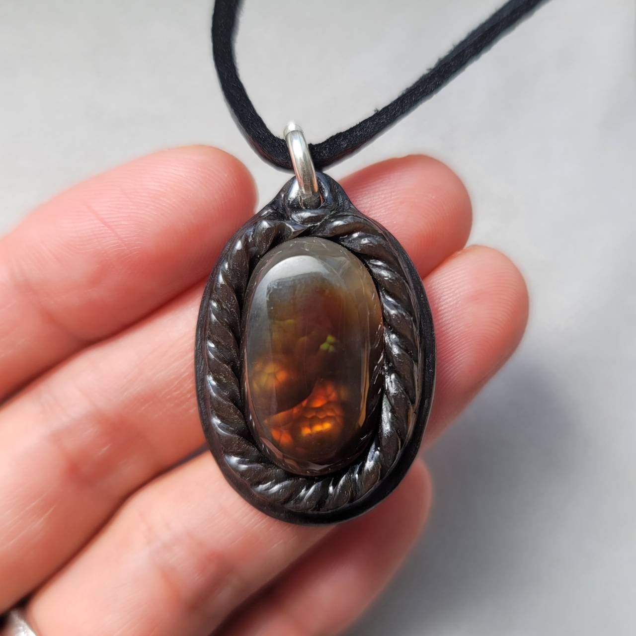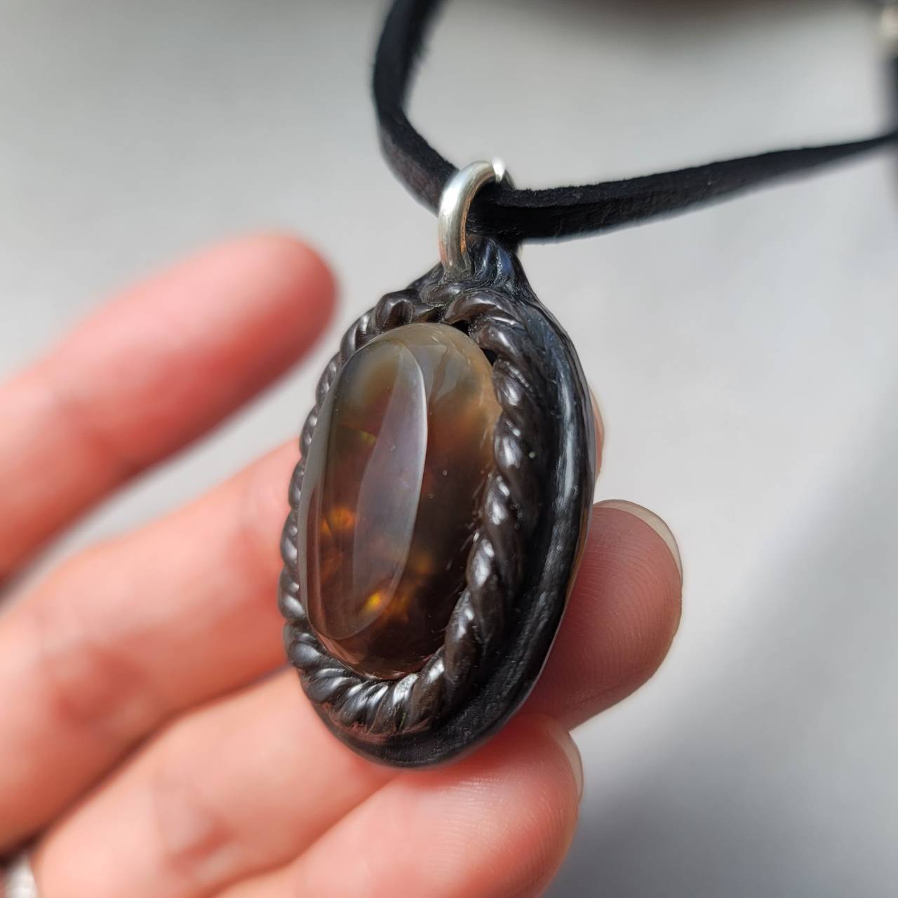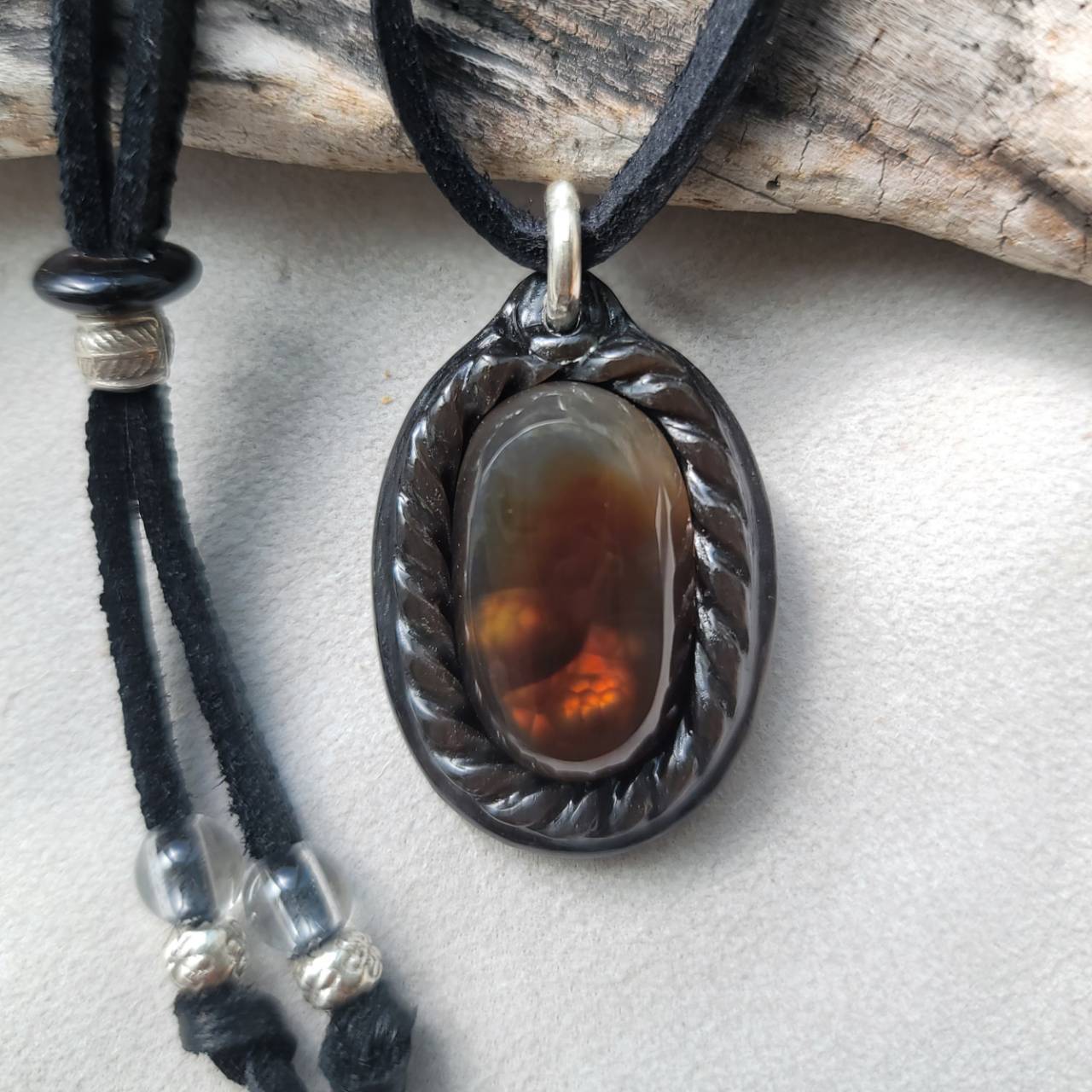 こちらは【水牛の角 ファイアーアゲートのペンダント】になります。