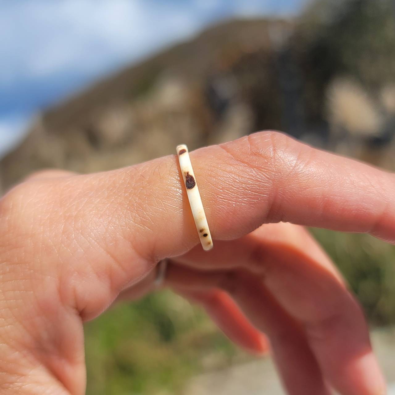 鹿の角を輪切りにカットし、柄を残し削り出した細身のリングです。