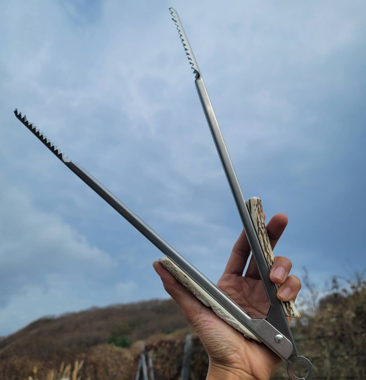 こちらは【鹿の角 キングマンターコイズの炭バサミ】になります。