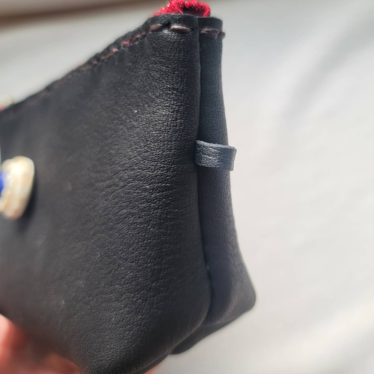鹿革のポーチ 鹿の角ラピスラズリのコンチョ