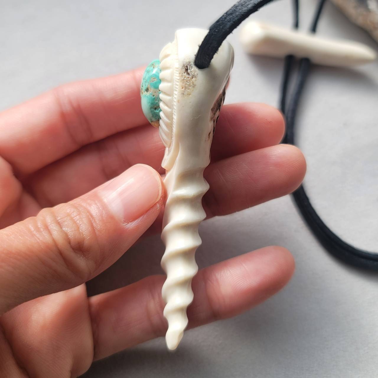 こちらは【鹿の角 ソノラ産ターコイズのとんがりペンダント】になります。