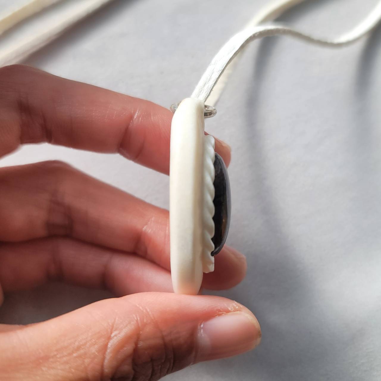 調整用ビーズ、エンドビーズともに鹿の角から削り出しています。
