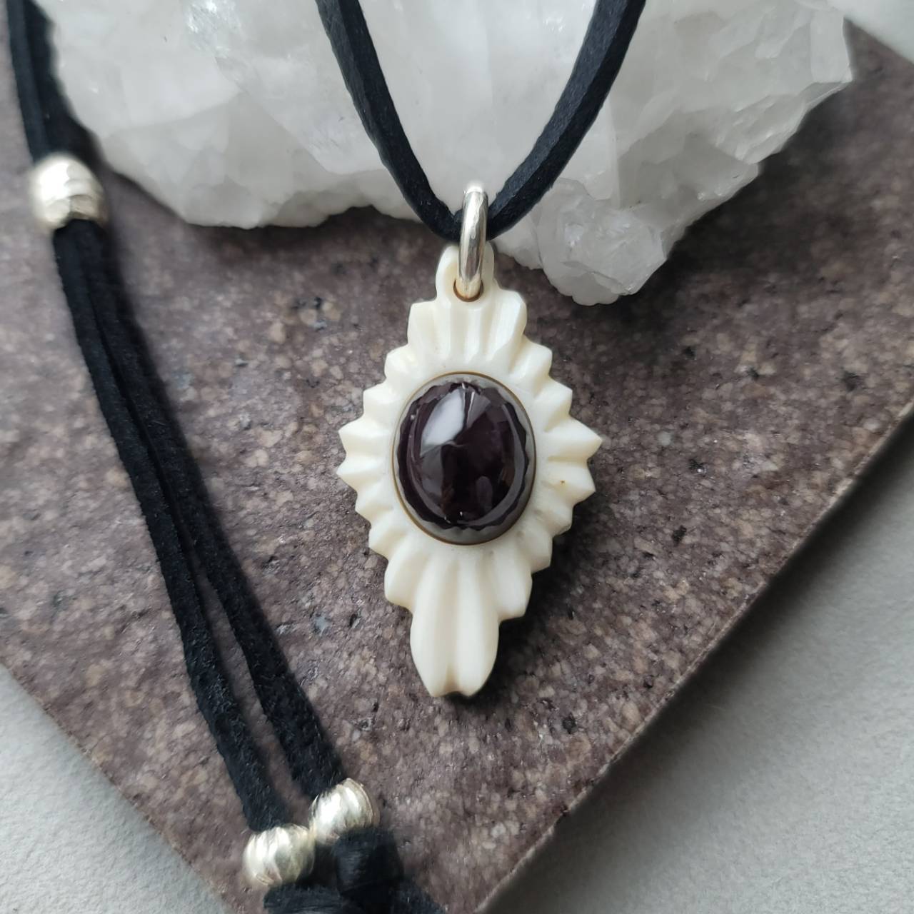 こちらは【鹿の角 スターガーネットペンダント】になります。