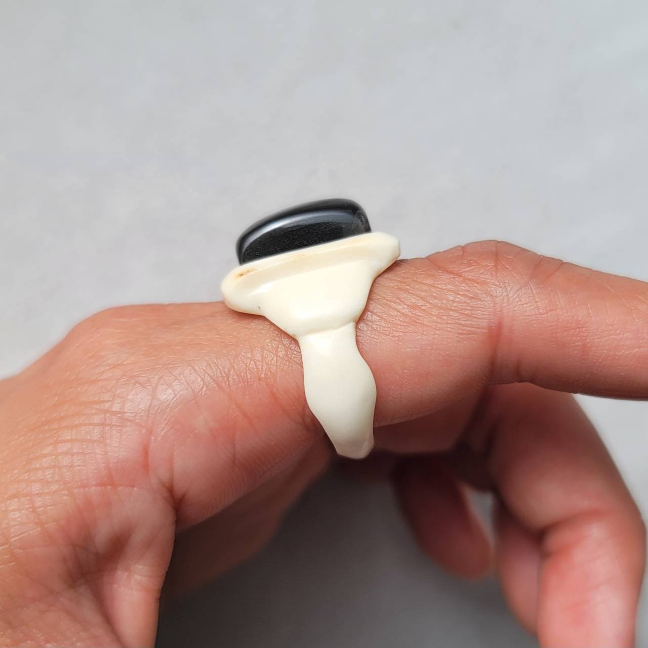 こちらは【鹿の角 ブラックラブラドライトのリング 約13号】になります。