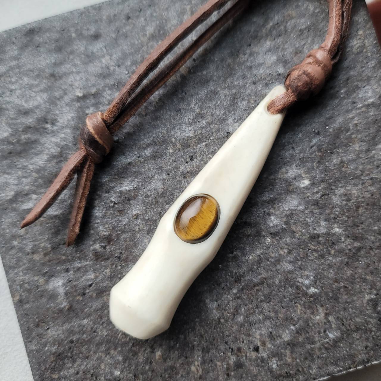 鹿の角 タイガーアイの角笛ストラップ
