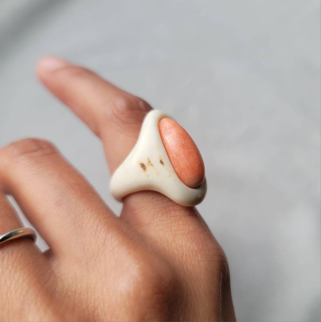 こちらは【鹿の角 深海赤珊瑚のリング 約10.5号〜10.8号】になります。