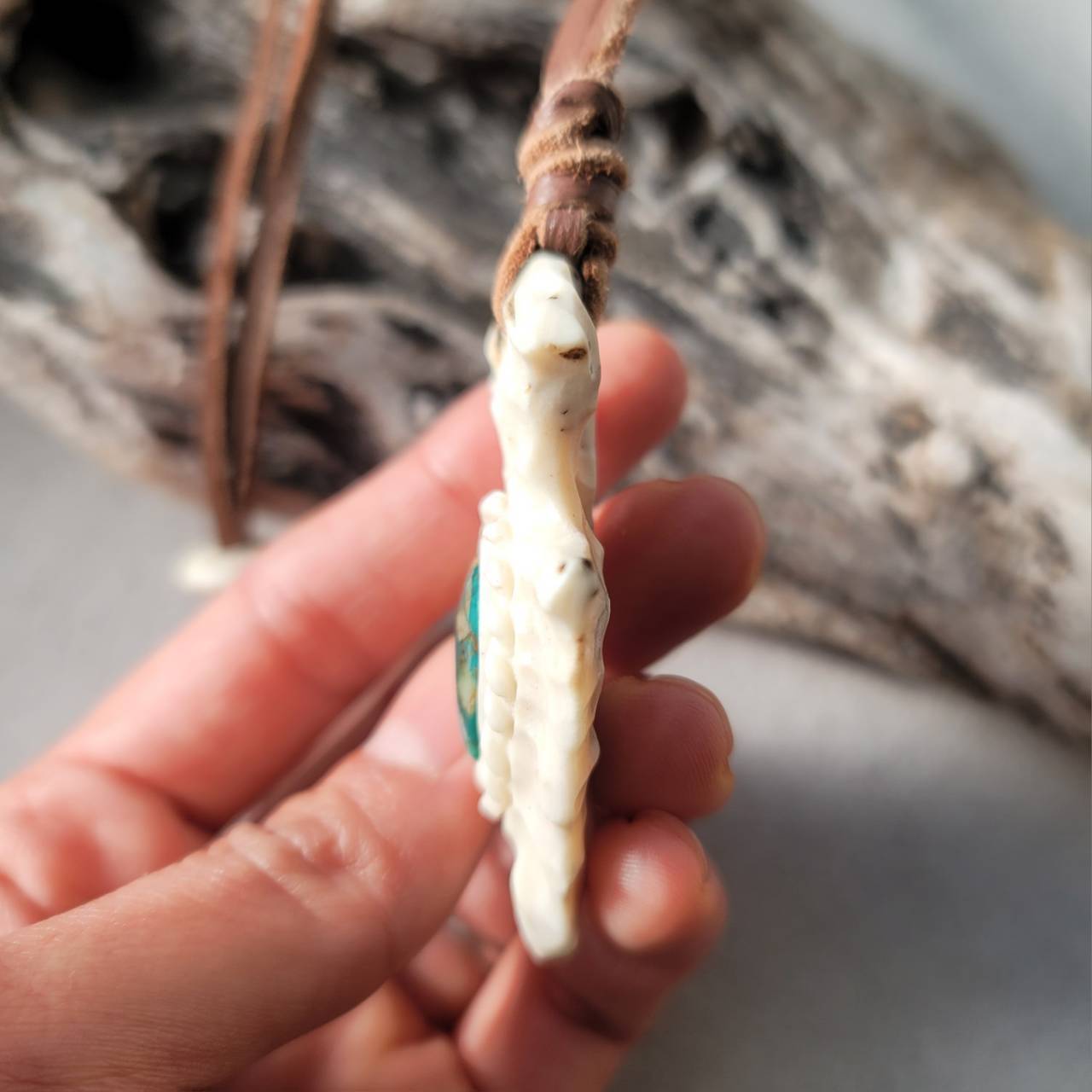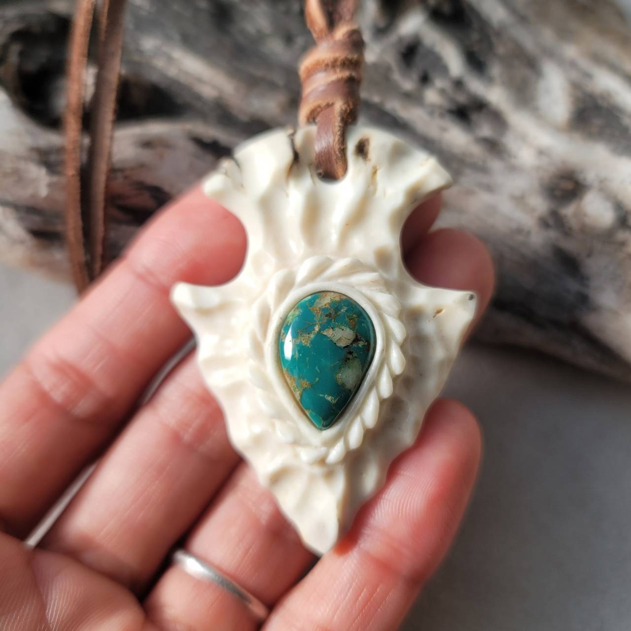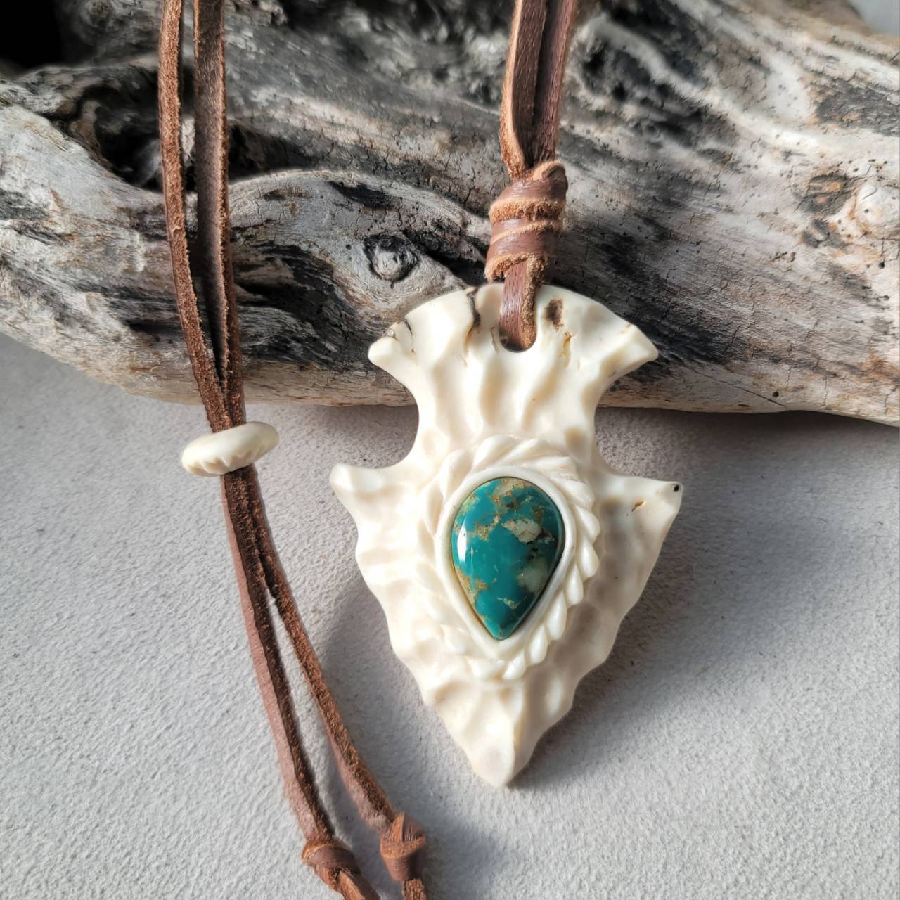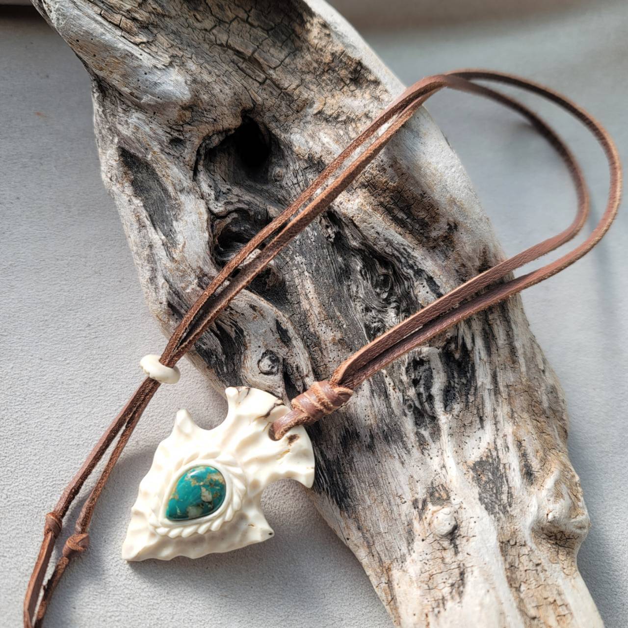 こちらは【鹿の角 チベタンターコイズの矢じりペンダント】になります。