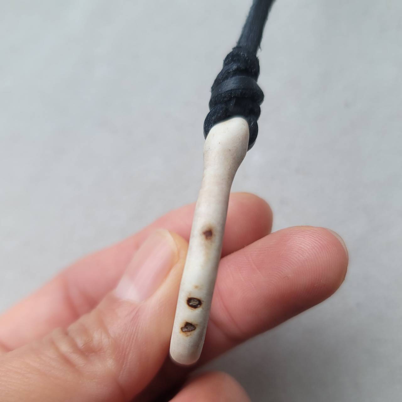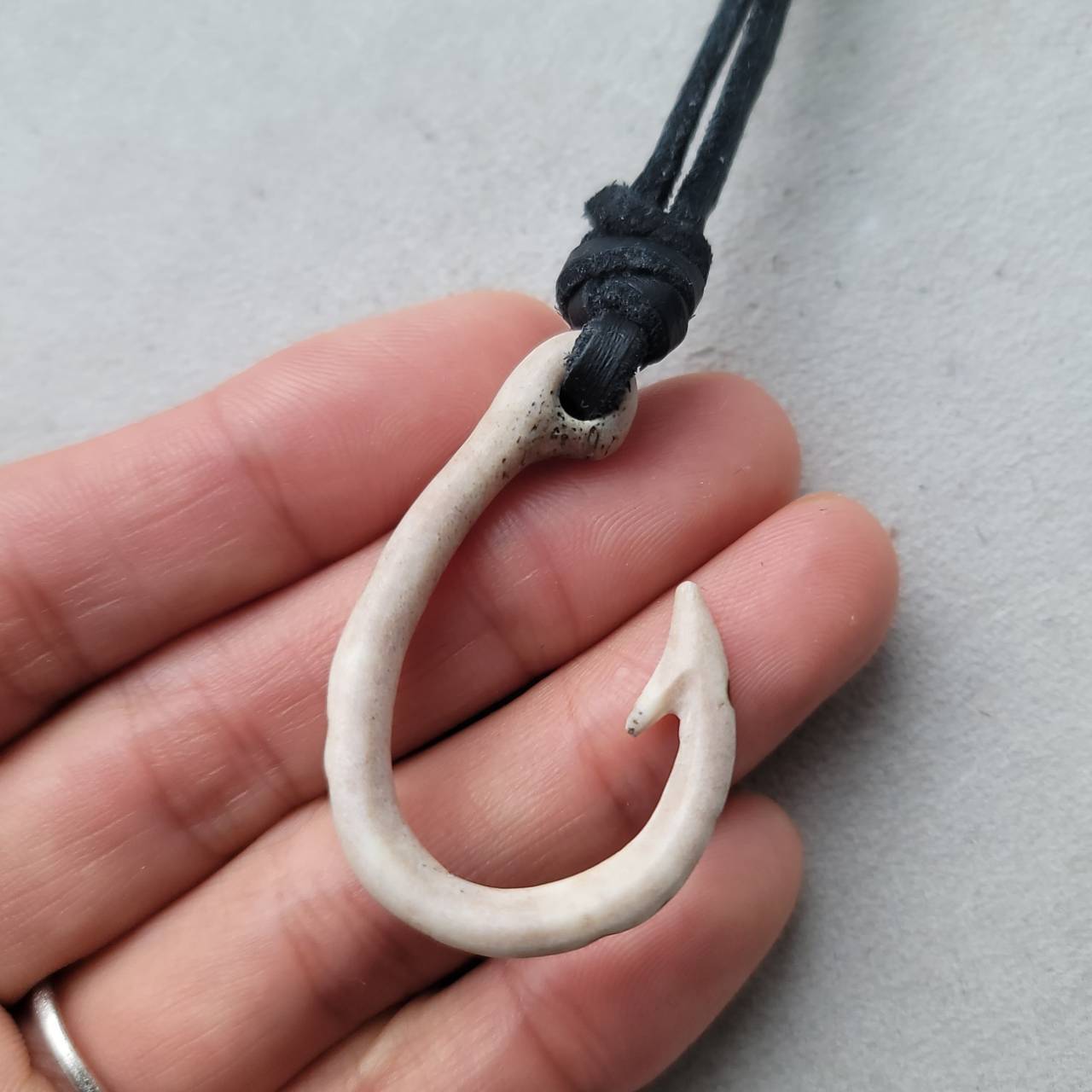 こちらは【鹿の角 フィッシュフックの革紐ストラップ】になります。