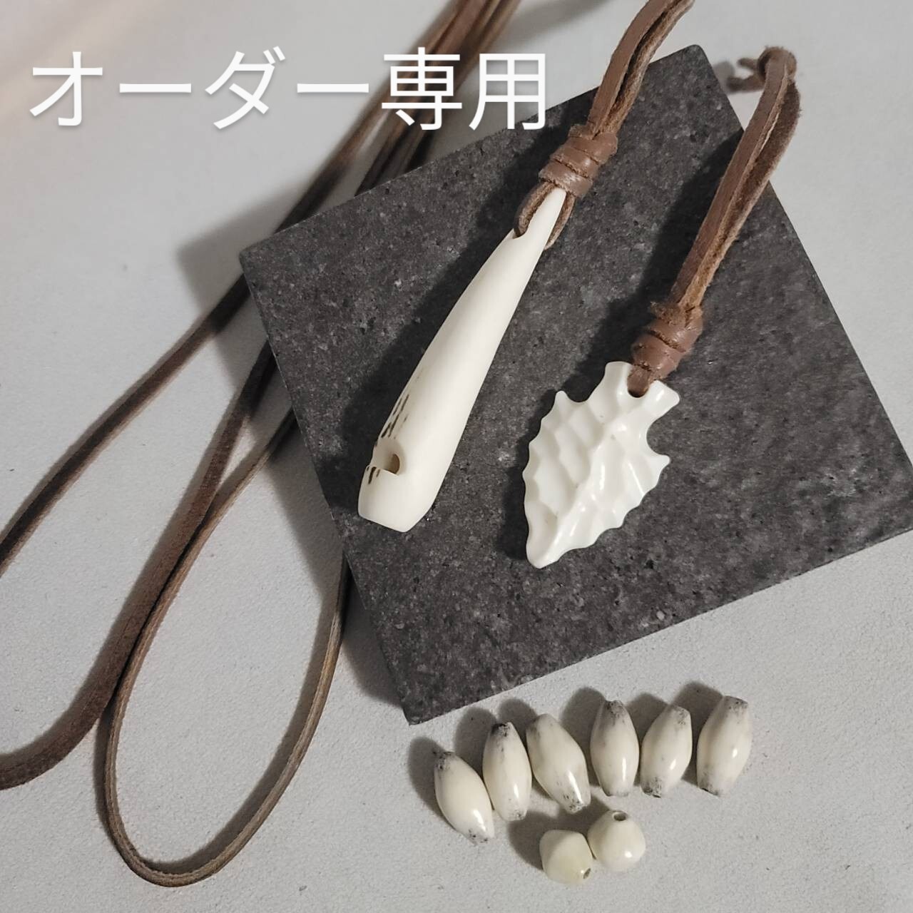オーダー専用 鹿の角 角笛ストラップ、矢じりストラップ、鹿角ビーズ