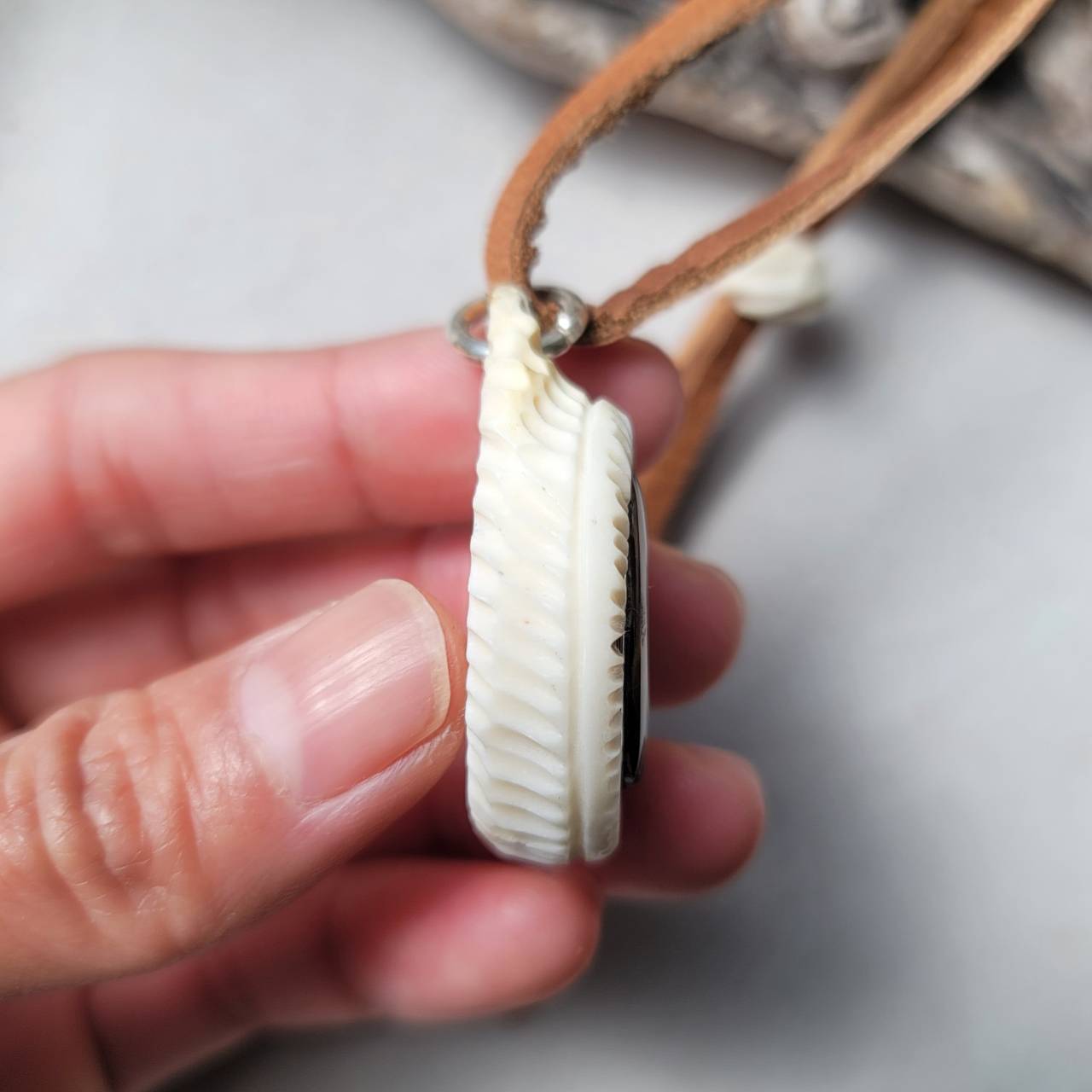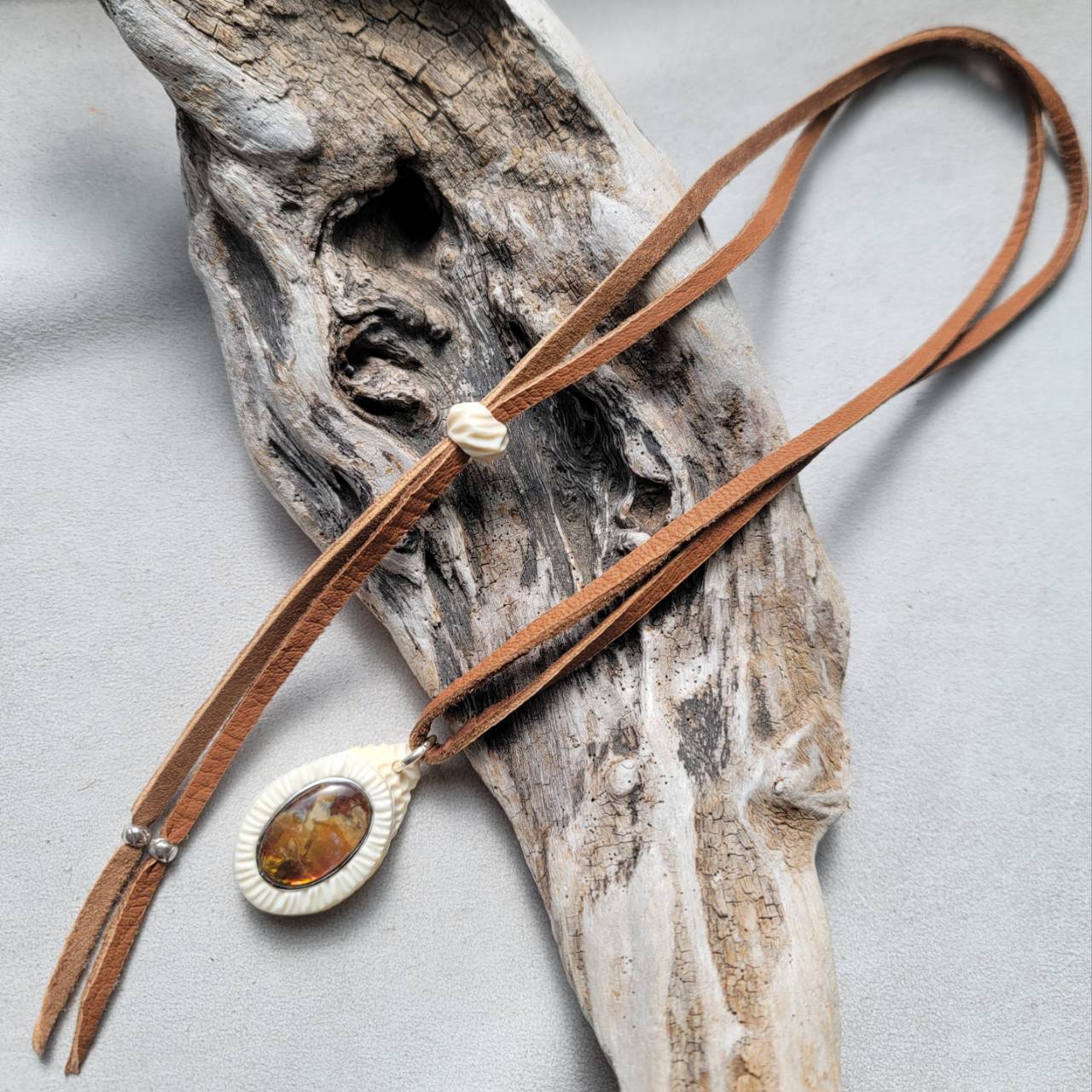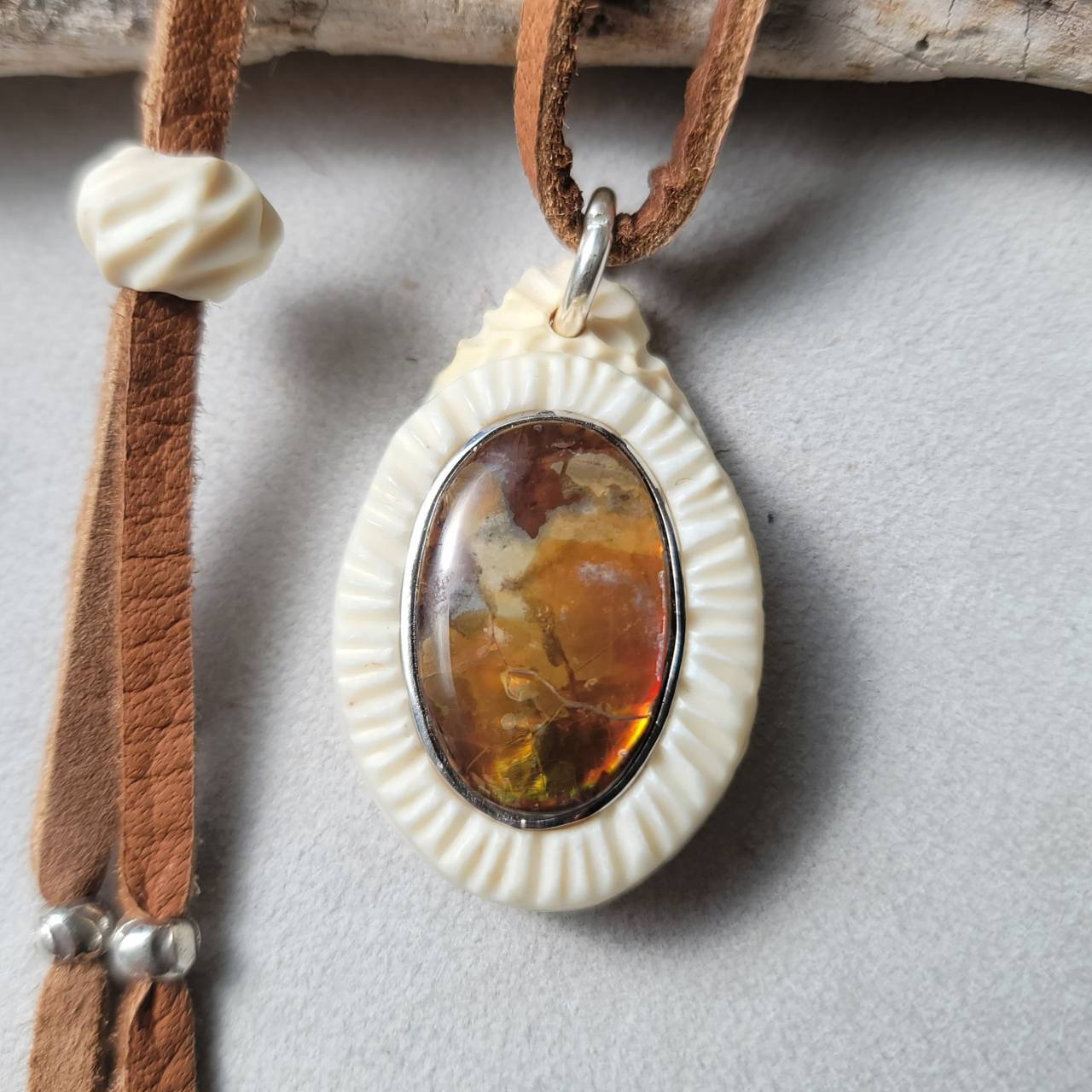 こちらは【鹿の角 アンモライトのペンダント】になります。