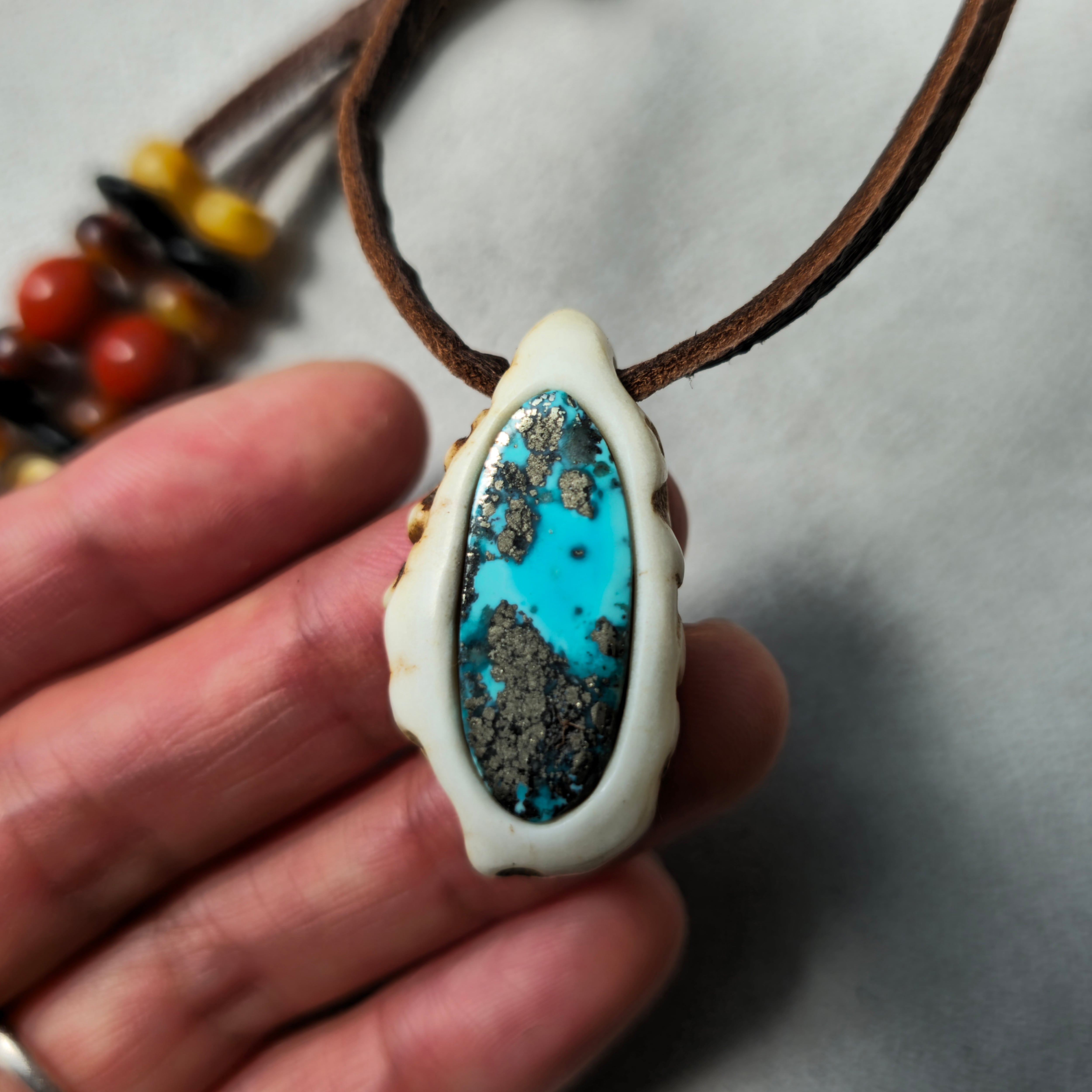こちらは【鹿の角 モレンシーターコイズのペンダント】になります。