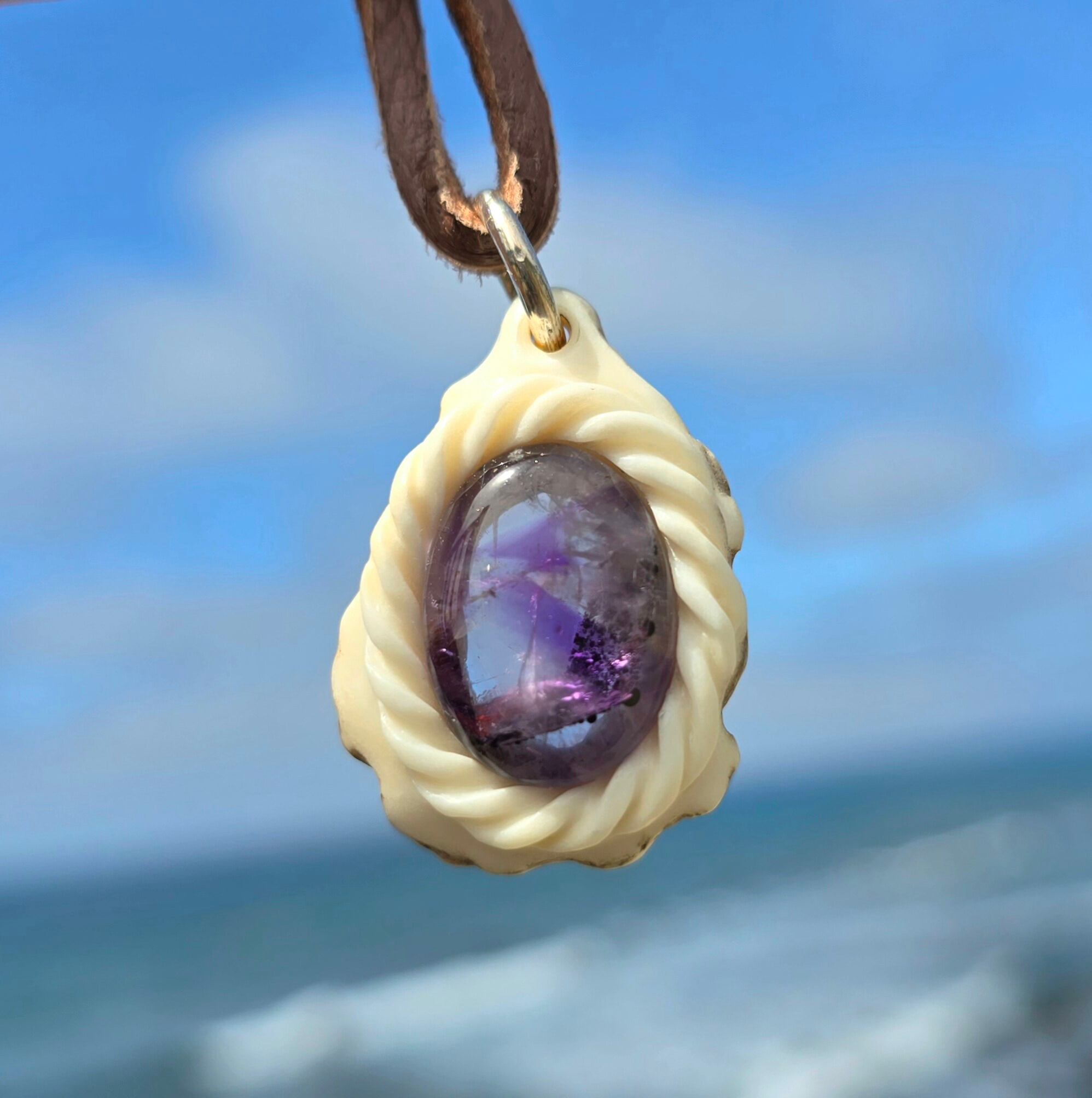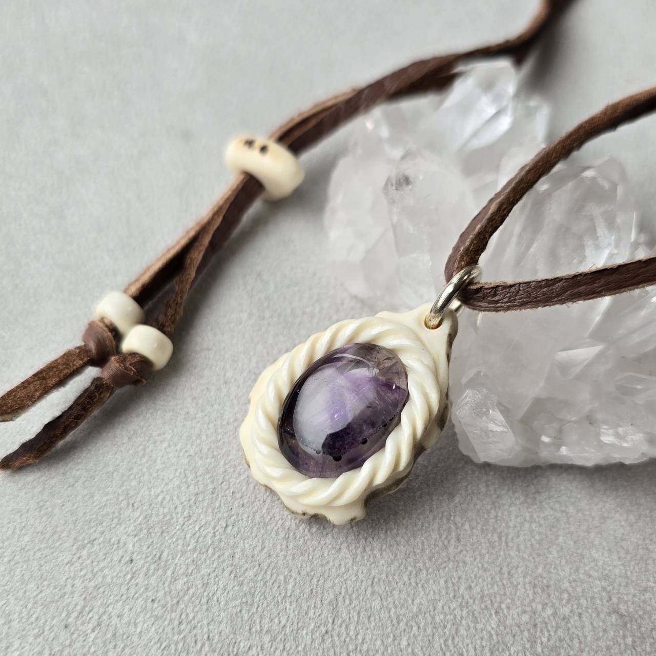 こちらは【鹿の角 トラピッチェアメジストのペンダント】になります。