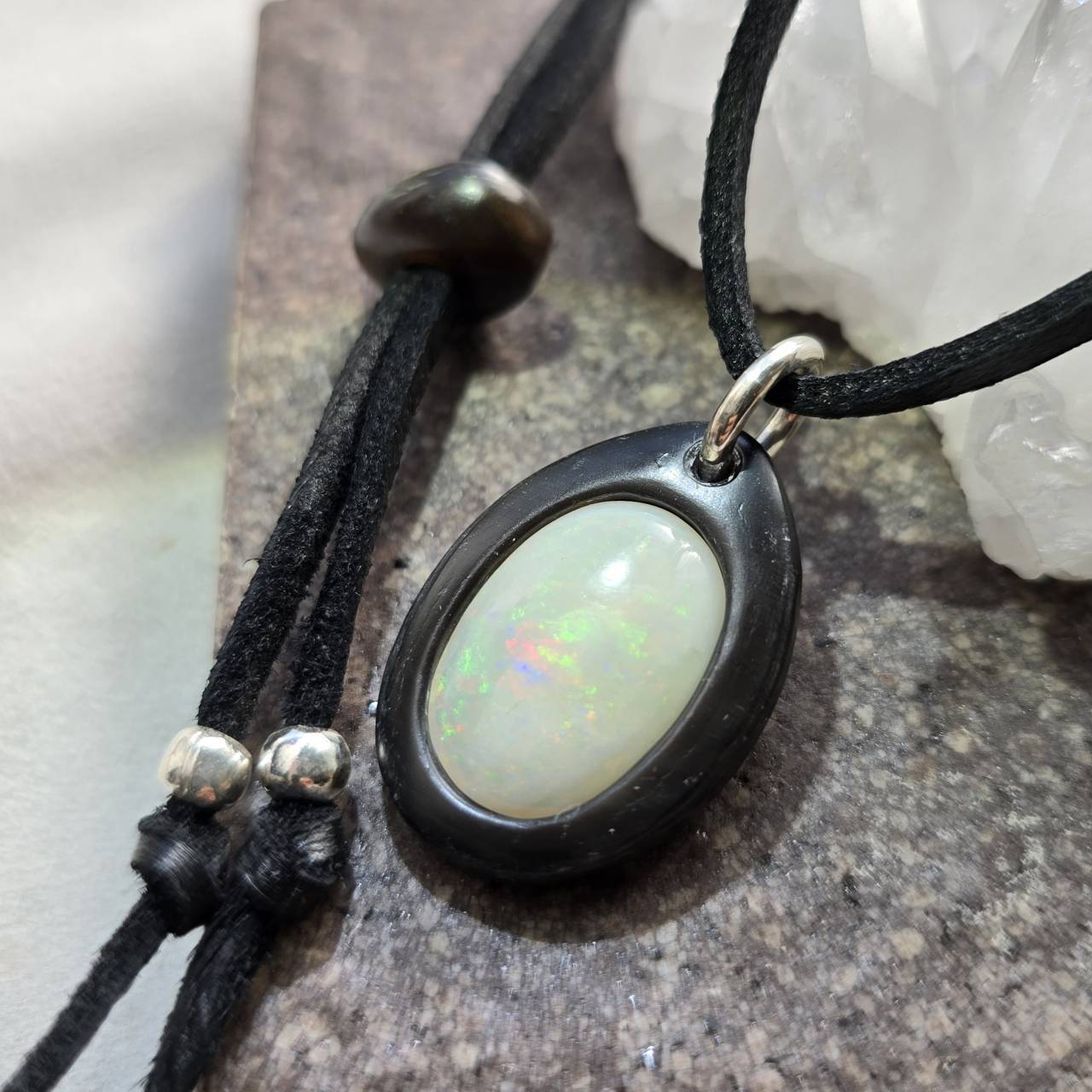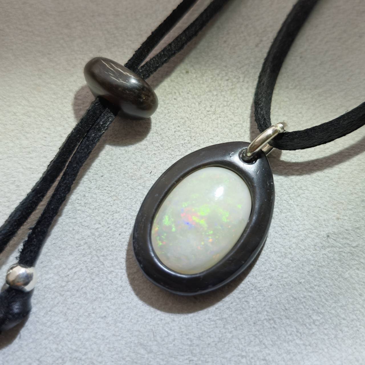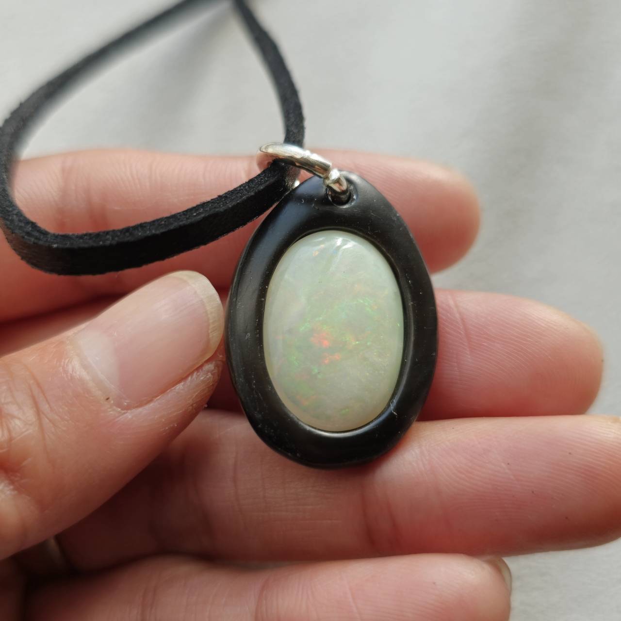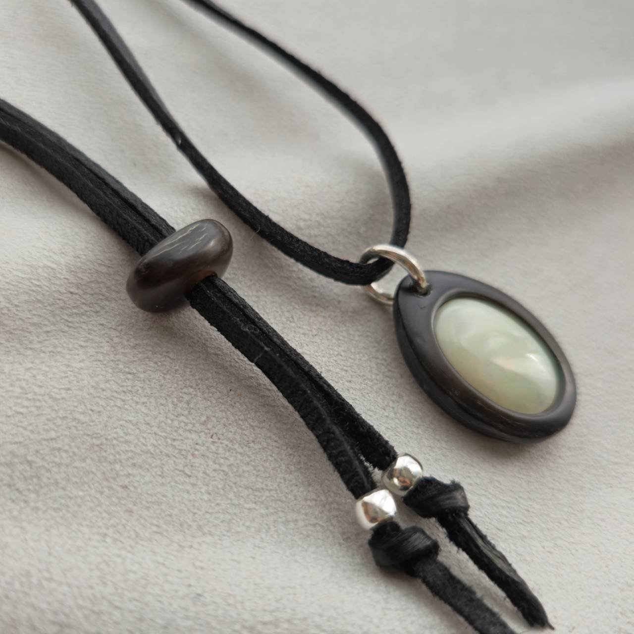 こちらは【水牛の角 ホワイトオパールのペンダント】になります。