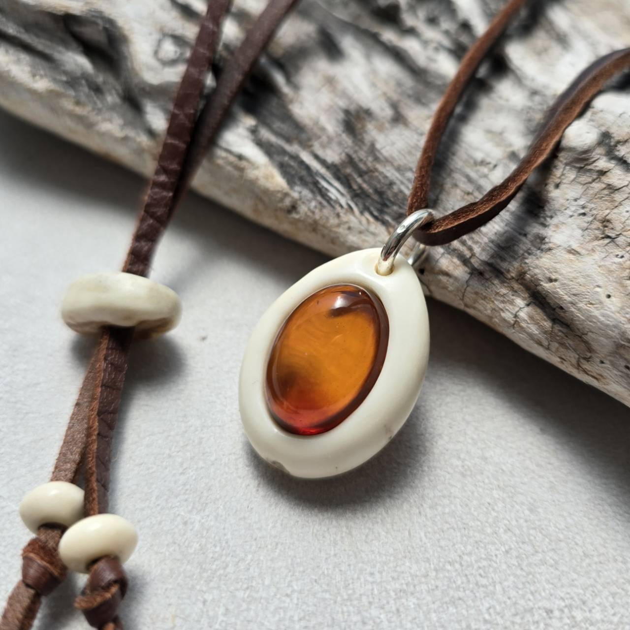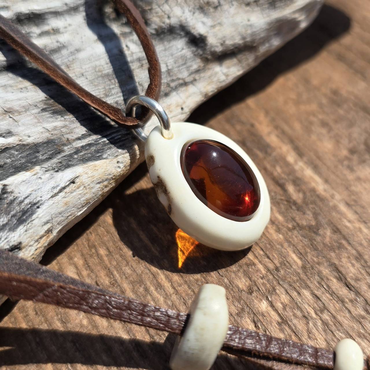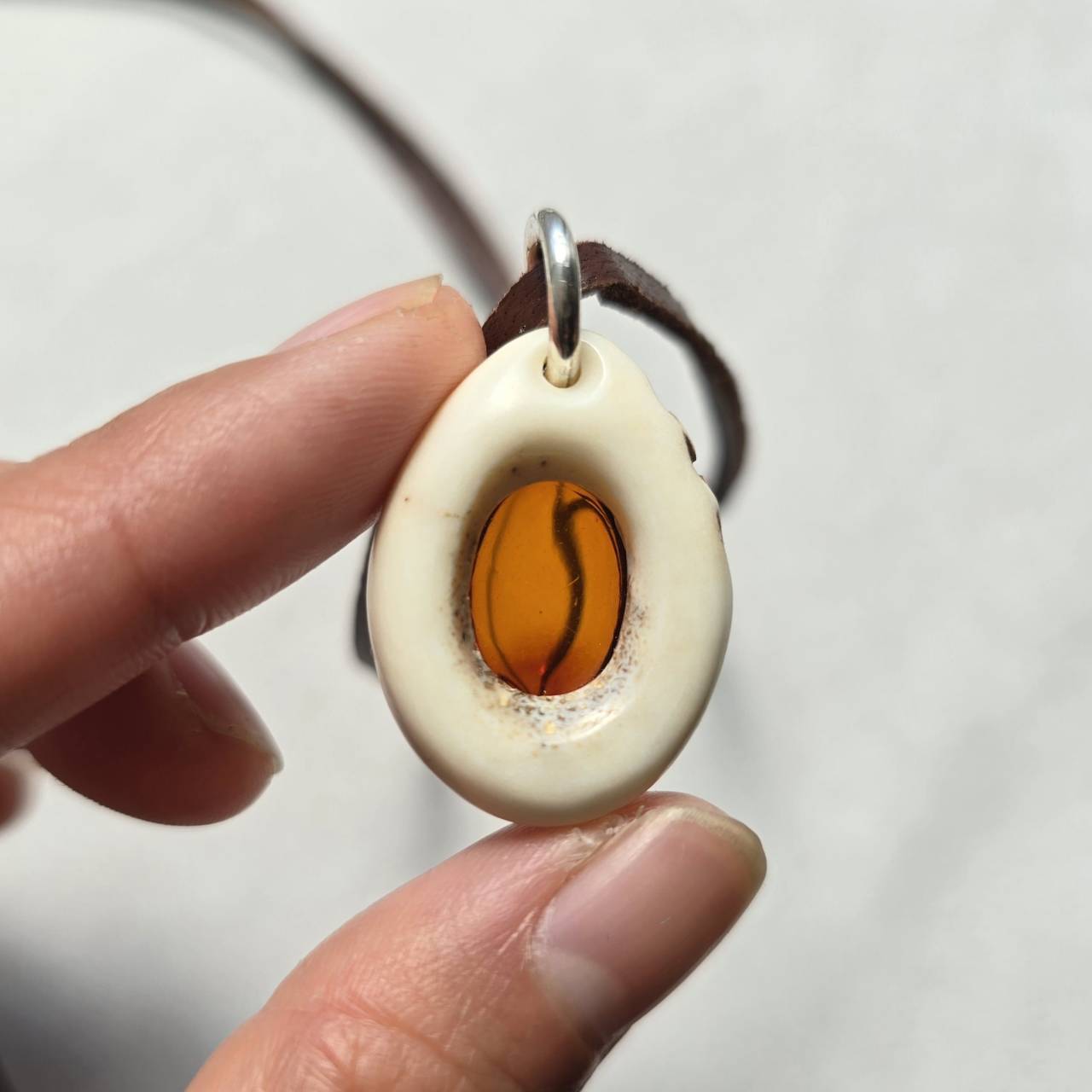こちらは【鹿の角 バルティックアンバーのペンダント】になります。
