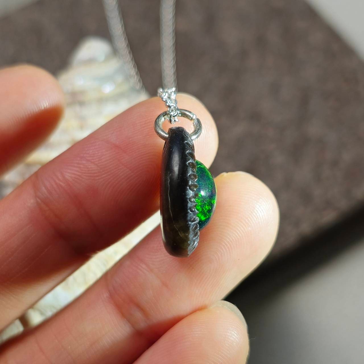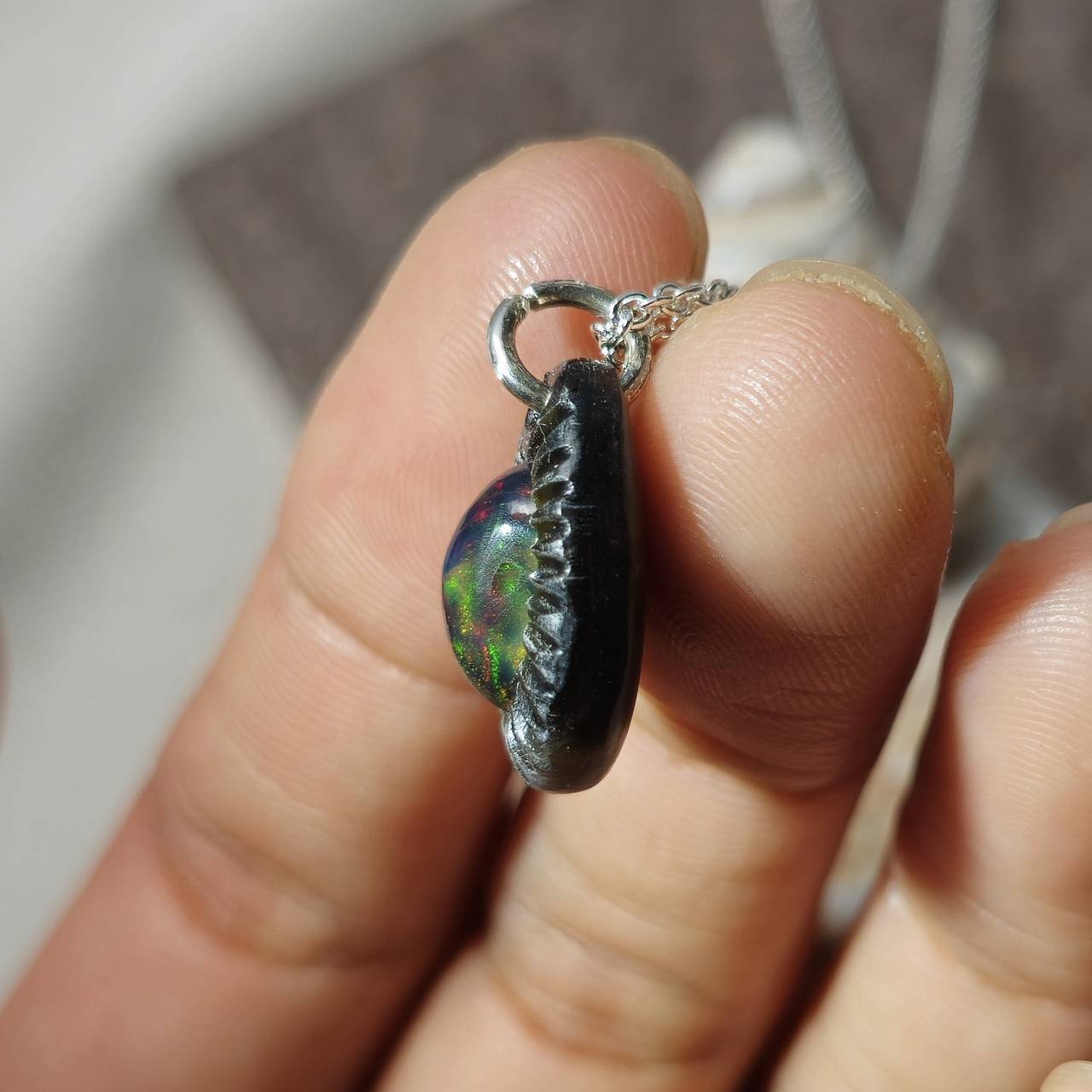 こちらは【水牛の角 ブラックオパールのネックレス】になります。