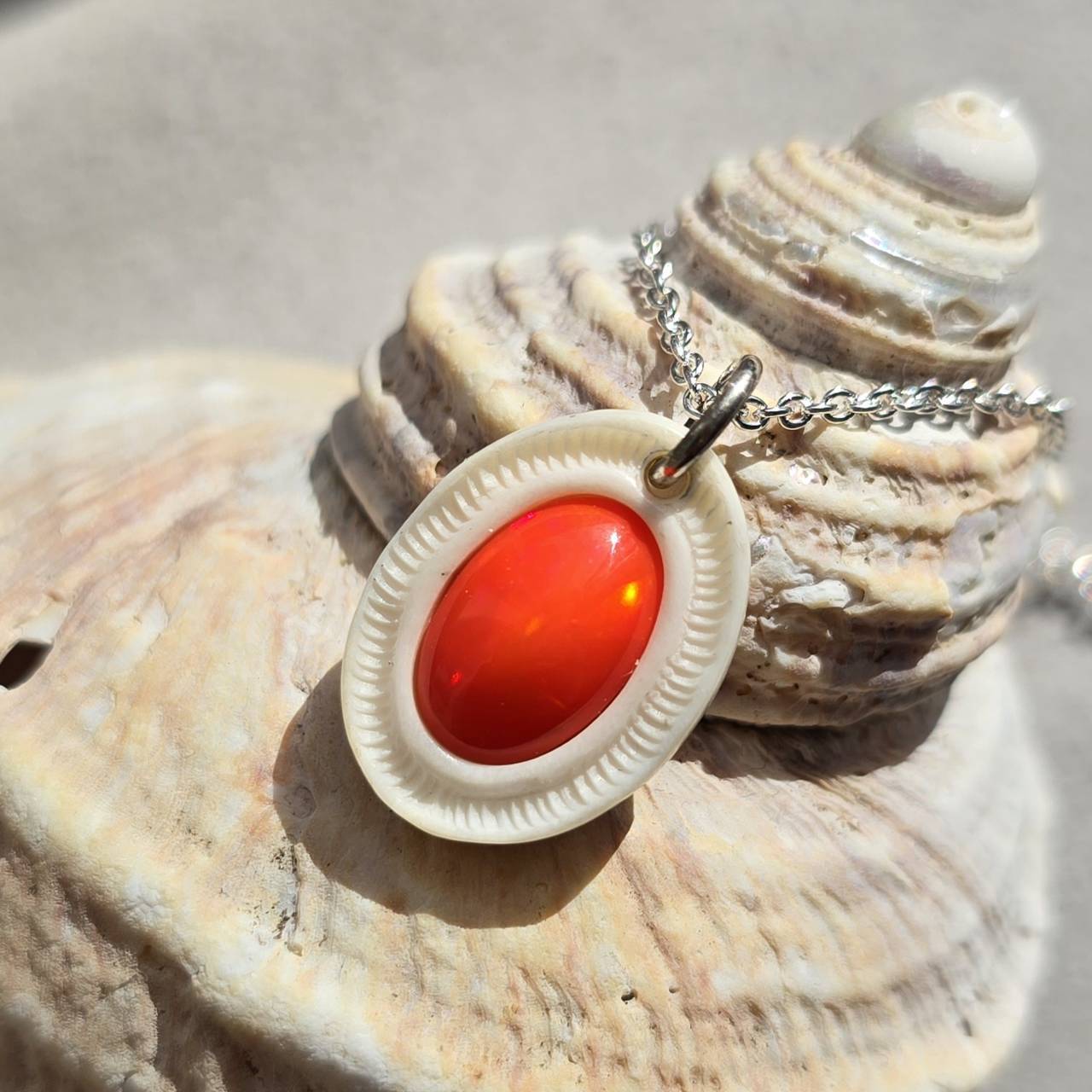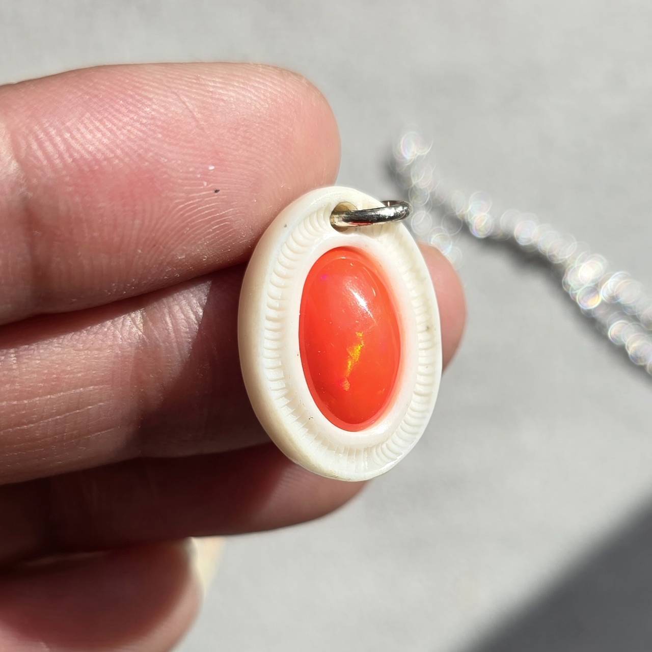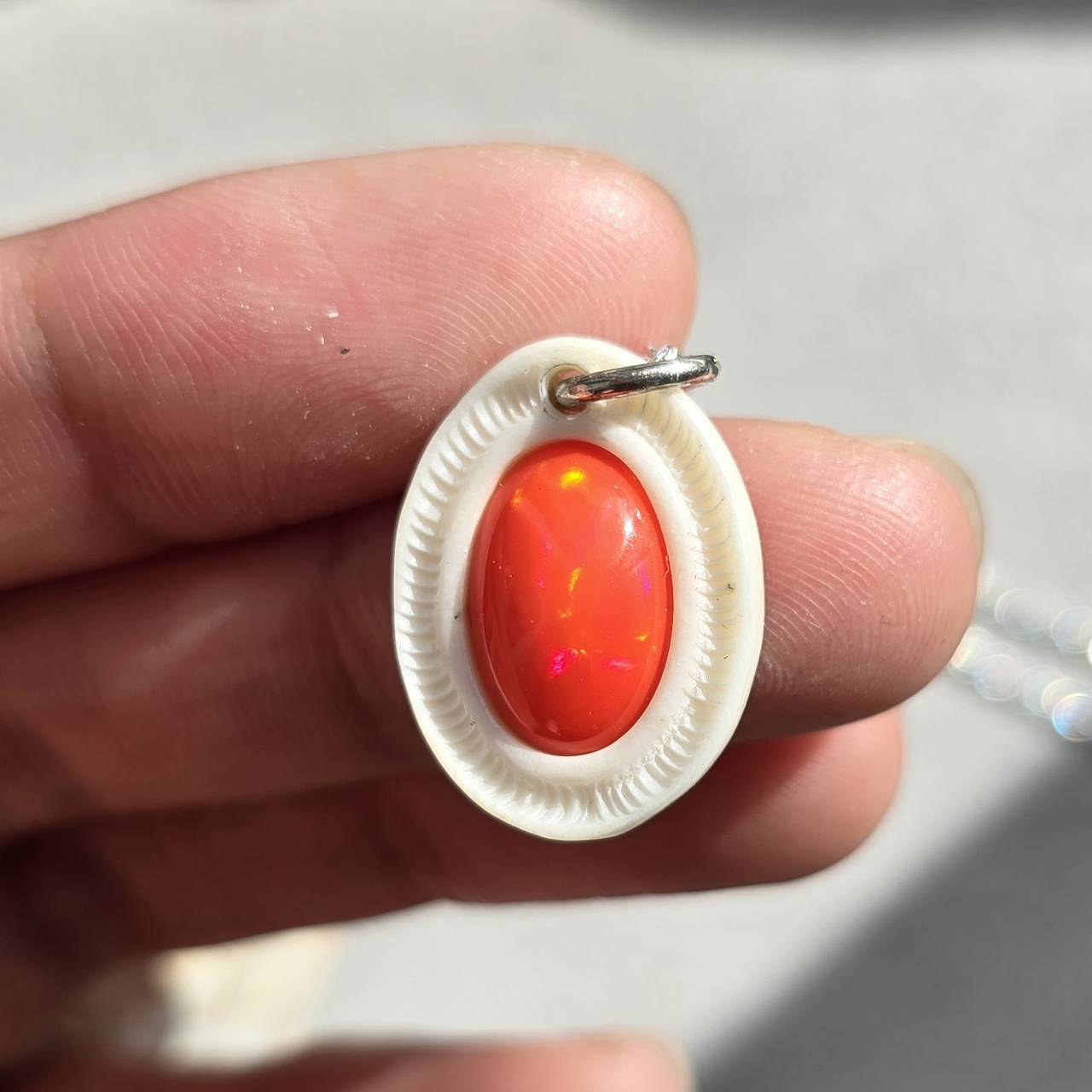 こちらは【鹿の角 ファイヤーオパールのネックレス】になります。