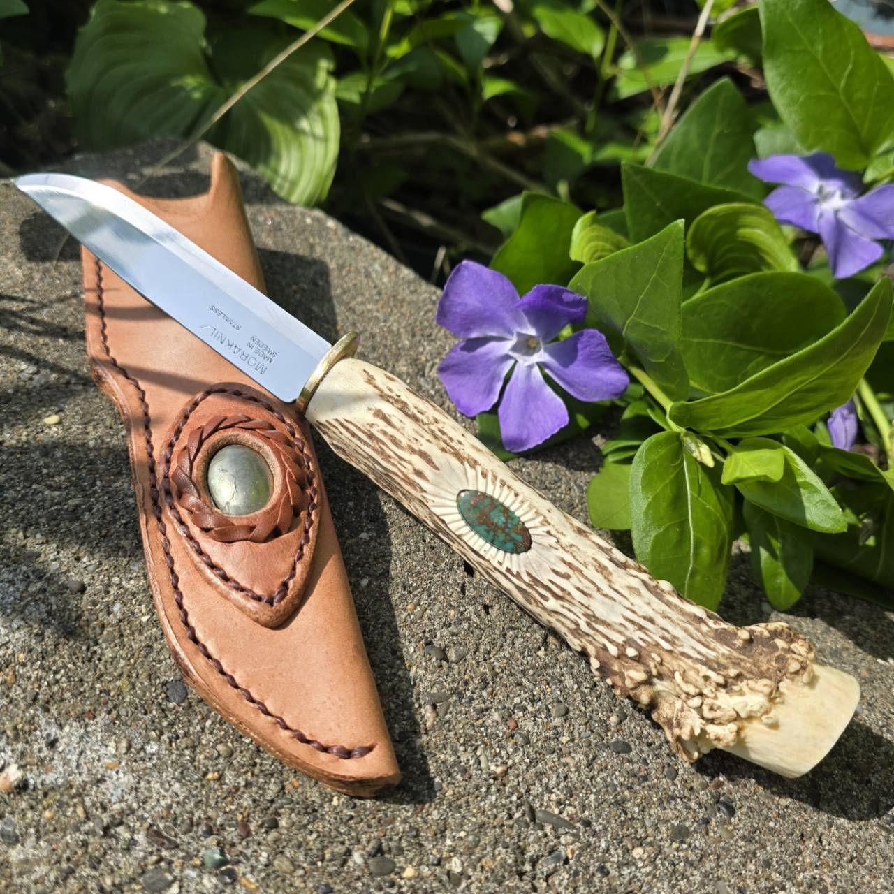 こちらは【鹿の角 パイロットマウンテンターコイズのモーラナイフ】になります。