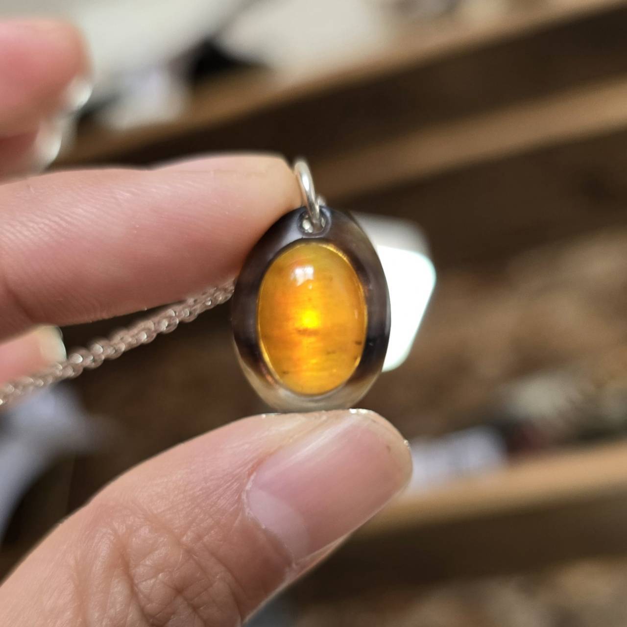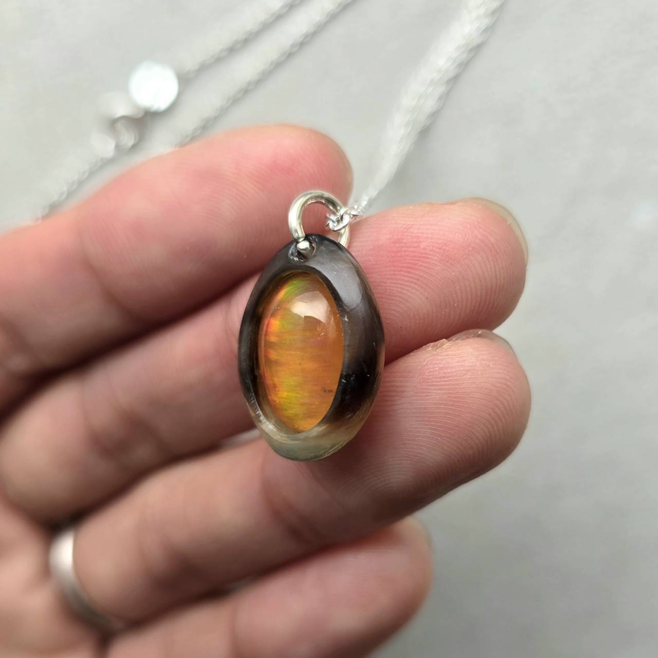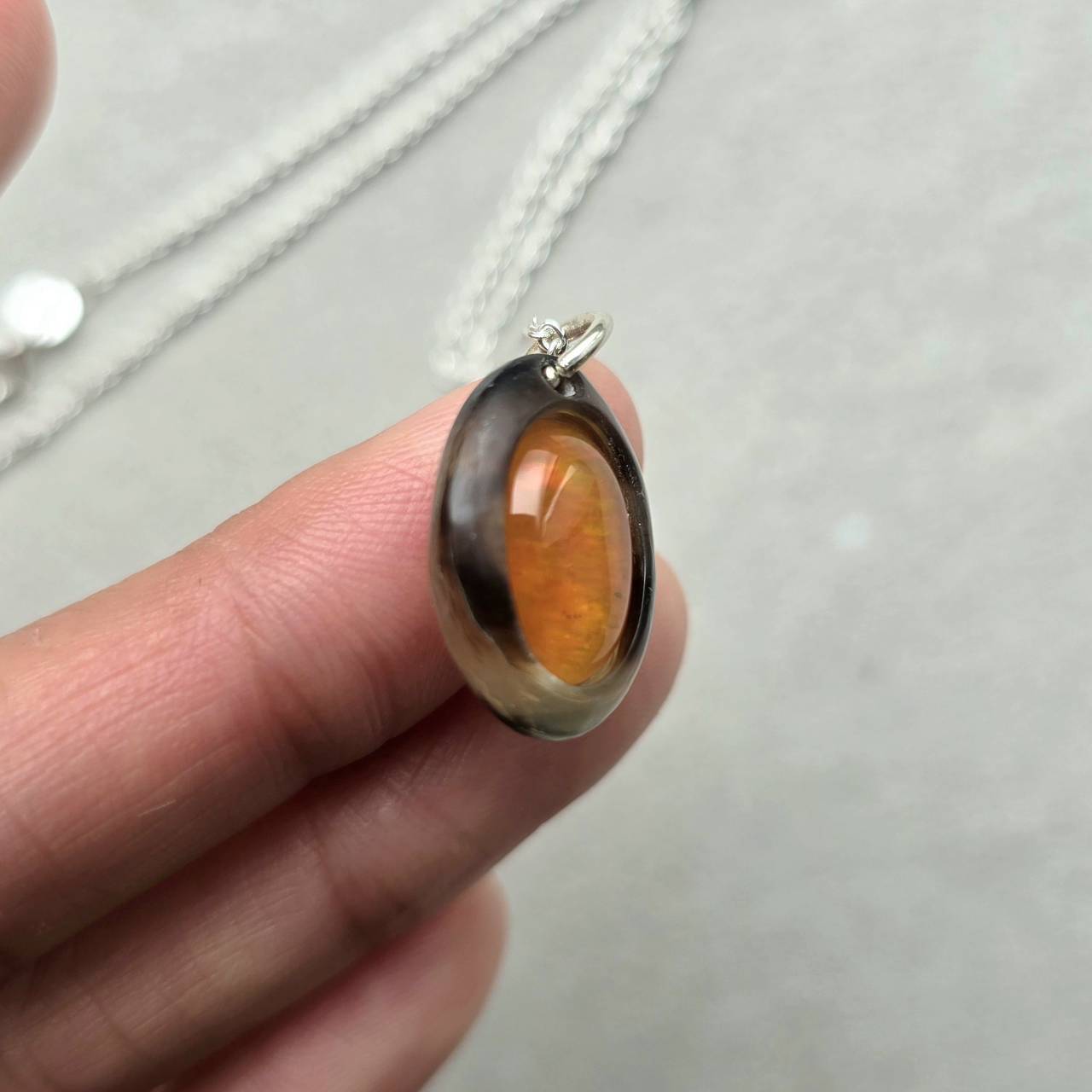こちらは【水牛の角 ファイヤーオパールのネックレス】になります。
