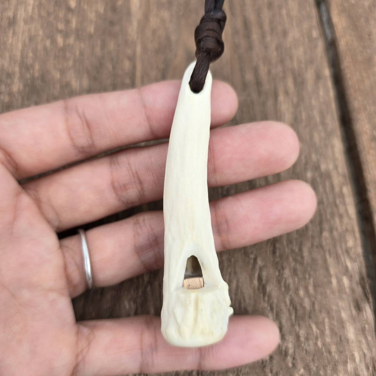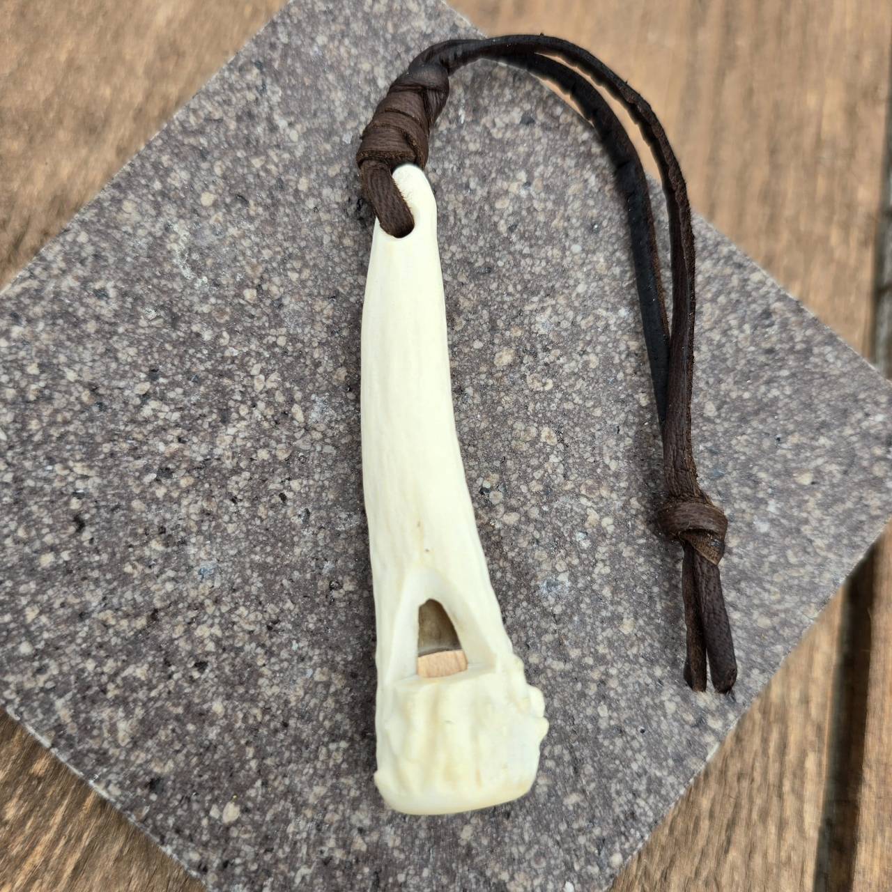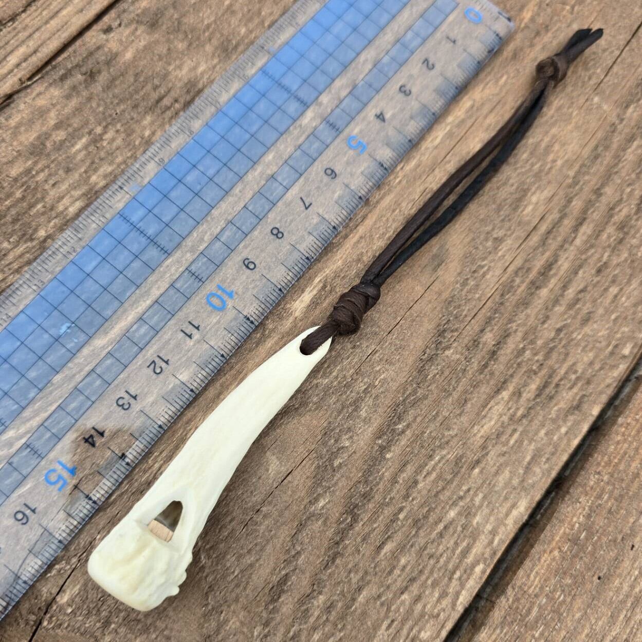 鹿の角 1本角の角笛 革紐ストラップ