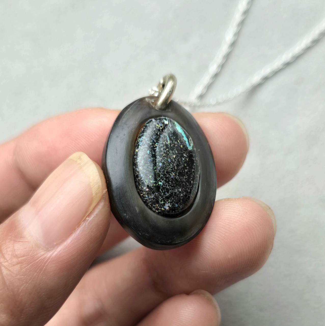 こちらは【水牛の角 マトリックスオパールのネックレス】になります。