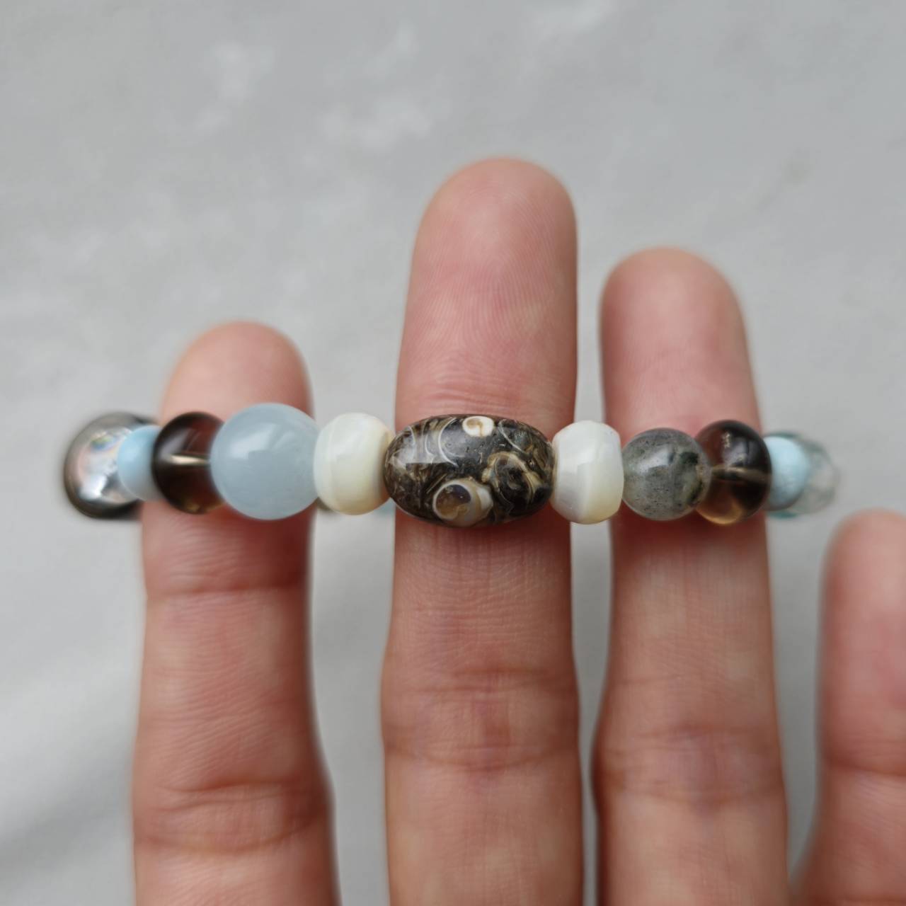 【アイリスクォーツ】【ラリマー】【ライトニング水晶】【アクアマリン】【マザーオブパール】【フォシルクリノイド】【マザーオブパール】【ラブラドライト】【ライトニング水晶】【ラリマー】【水晶】【氷種翡翠】になります。