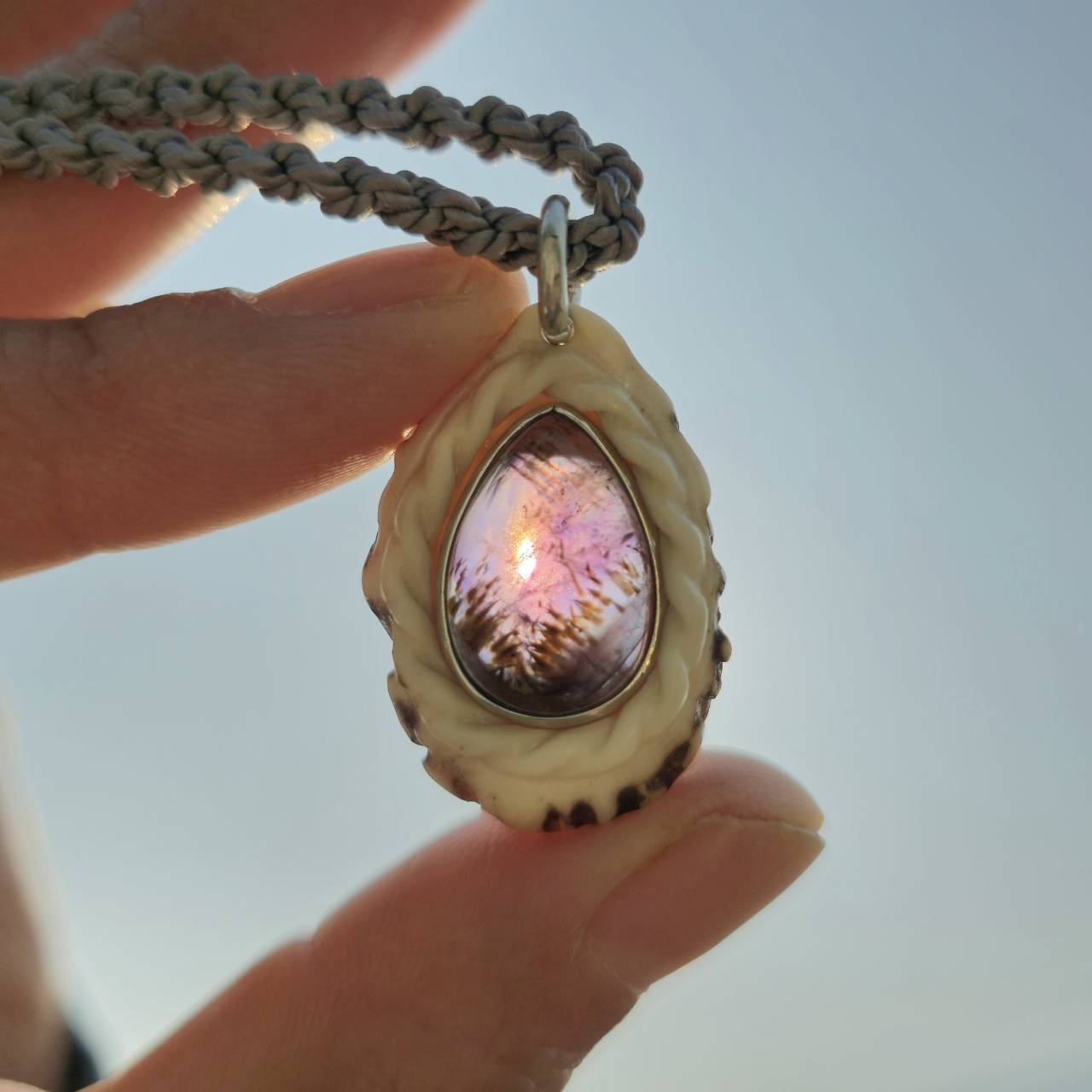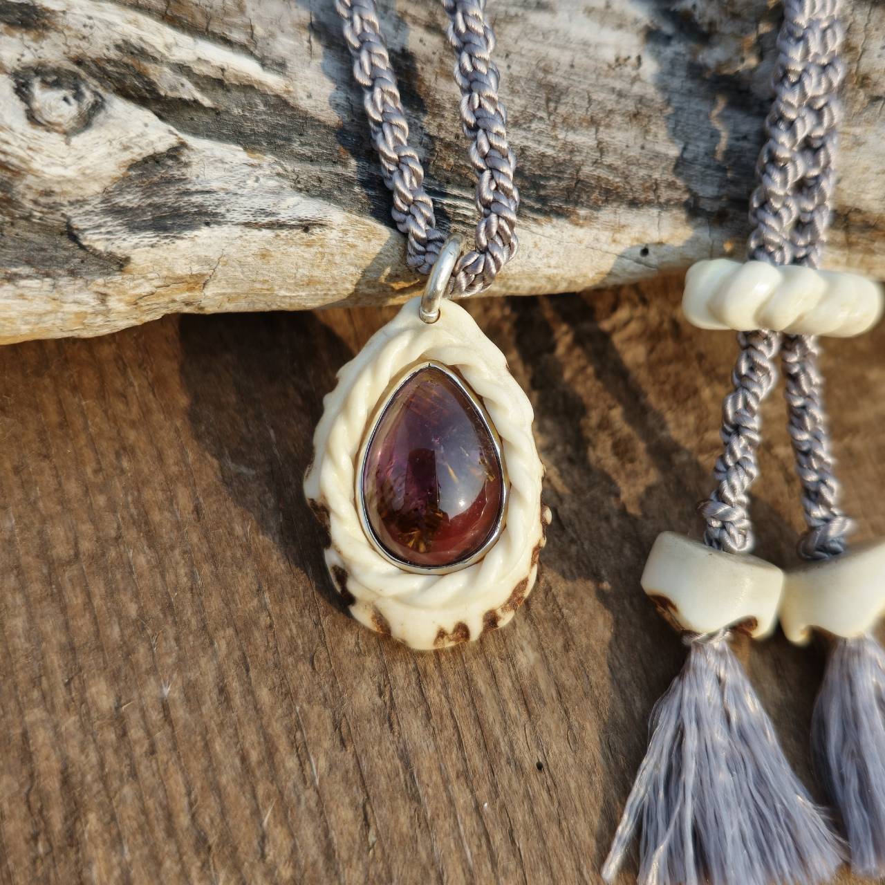 こちらは【鹿の角 カコクセナイトインアメジストのペンダント】になります。